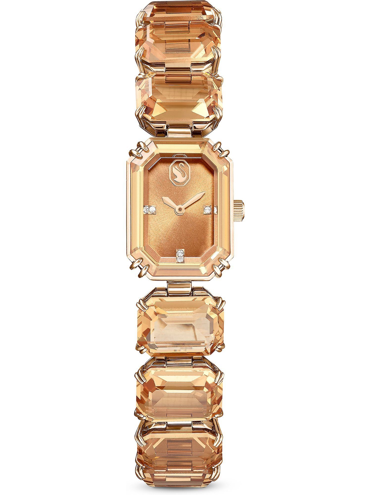 Swarovski Uhren sind der Inbegriff von funkelndem Luxus und raffinierter Eleganz. Mit ihren hochwertigen Kristallakzenten verleihen diese Zeitmesser jedem Outfit einen Hauch von Glamour – perfekt für alle, die das Besondere lieben. Eine perfekte Kombination aus lässig und elegant – das ist diese Damenuhr. Sie wird besonders durch das Metall-Gehäuse und das robuste, aber dennoch schicke Band aus Metall geprägt. Das champagnerfarbene Gehäuse der Uhr Swarovski Millenia Watch geht in ein Armband in Bronze über. Die Breite des eckigen Gehäuses beträgt 17 mm, die Длина 23 mm. Durch das Quarzwerk ist eine hohe Präzision gewährleistet. Die Orientierung auf dem Ziffernblatt wird durch die Markierungen erleichtert, was zur leichten Ablesbarkeit beiträgt. Das Uhrenglas aus Saphirglas bietet eine unvergleichliche Klarheit und Härte, die Kratzern trotzt und der Uhr einen zeitlosen Glanz verleiht. Du kannst dich auf diesen Zeitmesser immer verlassen: Er ist bis zu 50 Meter (5 Bar) wasserdicht und hält damit den Belastungen beim Händewaschen und Baden stand. Durch die Butterfly-Faltschließe lässt sich das Armband leicht anlegen und sicher verschließen. Bleibt nur noch eins zu sagen: Die Swarovski Millenia Watch Damenuhr ist die perfekte Wahl für alle, die auf der Suche nach einem geschmackvollen und zugleich präzisen Begleiter für den Alltag sind.