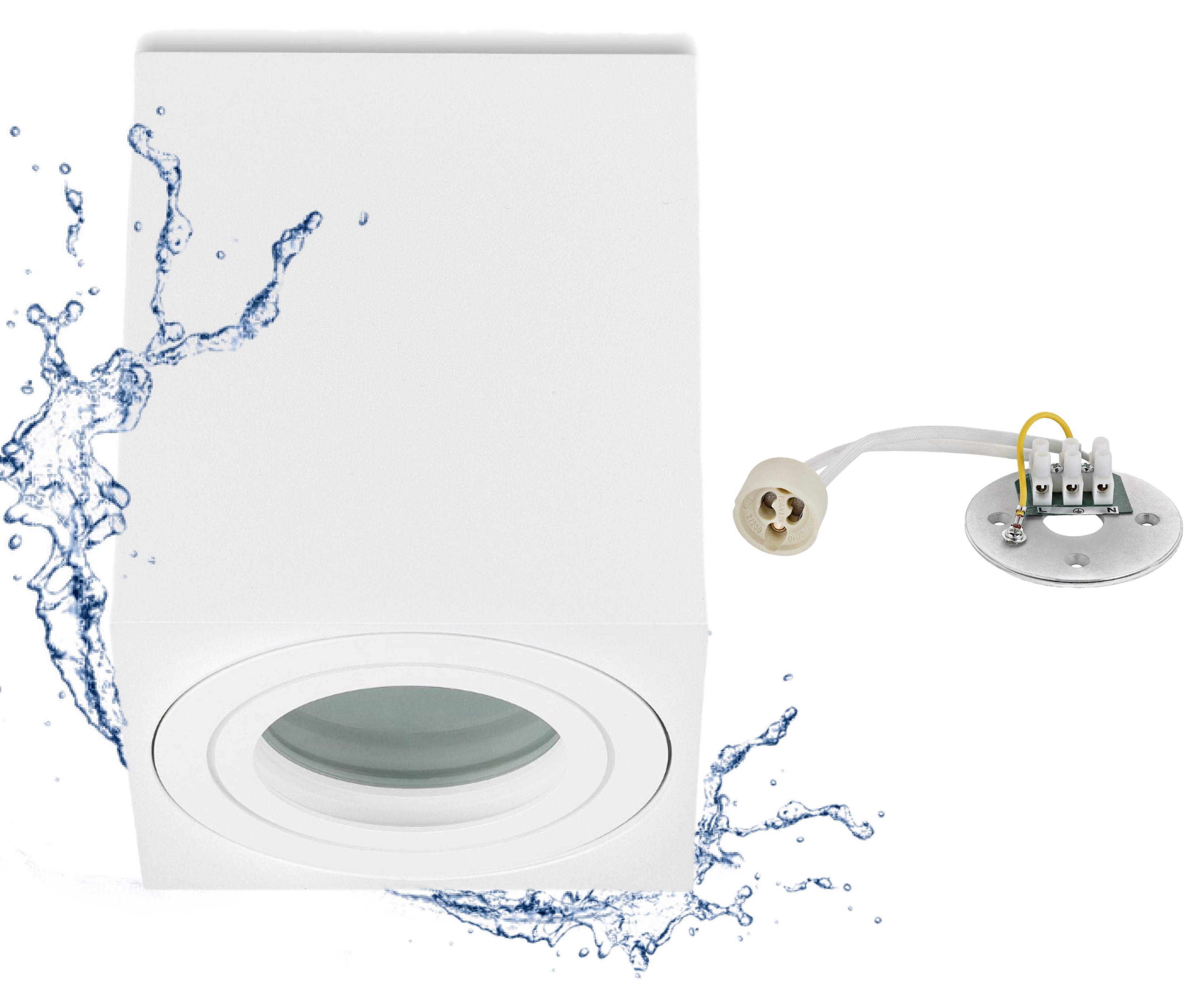 LIEFERUMFANG - Sie erhalten 1x Aufbaustrahler eckig in der Gehäusefarbe Weiß matt sowie eine Lüsterklemme und ein Montage Set mit Schrauben & Dübel für die Befestigung | Es ist kein Leuchtmittel enthalten. In unserem Produktportfolio erhalten Sie das von Ihnen gewünschte passende 230V LED-GU10 in warmweiß oder kaltweiß.