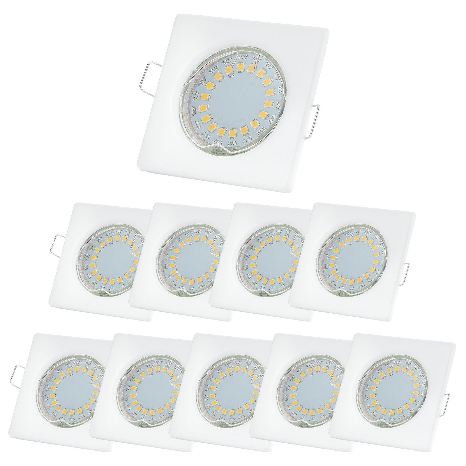 LIEFERUMFANG Sie erhalten 10x Einbaustrahler 5 Watt GU10 inkl. Fassung, eckig in der Farbe Weiß