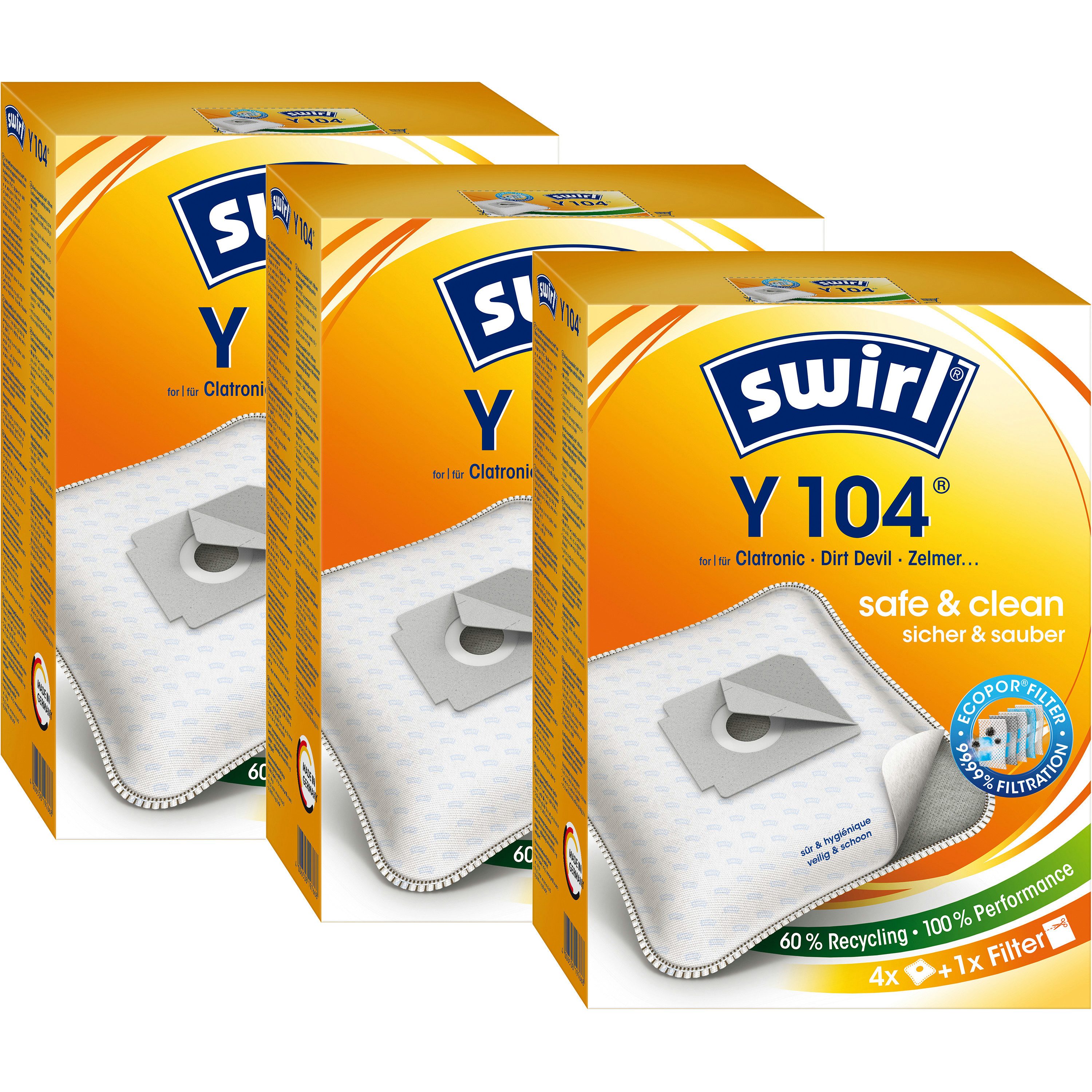 Die Swirl® EcoPor® Staubsaugerbeutel sind Hightech für die Gesundheit und die Umwelt. Die Staubsaugerbeutel schließen Staub und Schmutz sicher ein und das auch noch ressourcenschonend: Die Swirl® Staubsaugerbeutel mit EcoPor® Filter bestehen zu einem großen Teil aus Recyclingmaterial aus Altpapier. Passend für z. B. Clatronic BS 1238, Dirt Devil M 7003, Kalorik KA JU 1400.