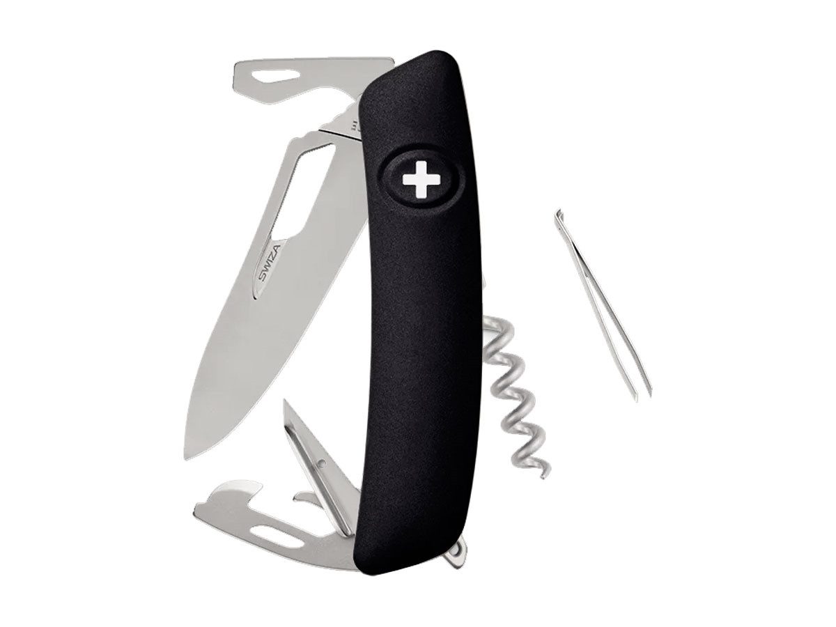 Entriegelung durch Drücken des SWIZA-Kreuzes.