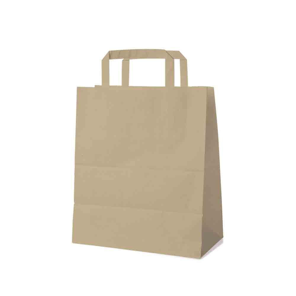 Die braunen Papiertragetaschen mit den Maßen 22 + 10 x 28 cm sind die nachhaltige und praktische Alternative zu Plastiktüten. Aus stabilem 70 g/m² Kraftpapier gefertigt, sind die Taschen langlebig, robust und bis ca. 10 kg belastbar.