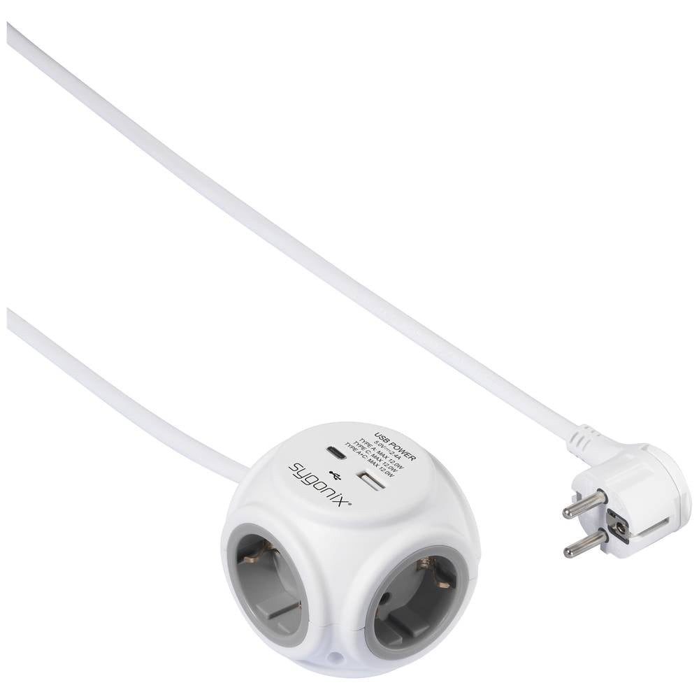 Eigenschaften | Betriebsspannung: 230 V/AC · Einsatzort: Innenbereich · Herstellerfarbe: Weiß, Grau · Kabel-Typ nach DIN/VDE: H05VV-F 3G 1,5 mm² · Kabellänge: 1.50 m · Material: Kunststoff · Netzstecker-Typ: Schutzkontakt · Plastikfreie Verpackung: Plastikfreie Verpackung · Produktabmessung, Breite: 77 mm · Produktabmessung, Höhe: 77 mm · Produktabmessung, Длина: 78 mm · Steckdosen-Anzahl: 3 · Steckdosenleisten-Besonderheiten: erhöhter Berührungsschutz, mit USB, mit USB-C® · Впередe technische Daten: 1x USB-A: 5 V/DC 2.4A, 12W max. 1x USB-C: 5 V/DC 2.4A, 12W max. Gesamt: 2.4A, 12W max. |