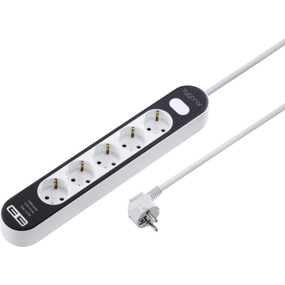 Eigenschaften | Anschluss-Leistung (Details): 3680 W · Betriebsspannung: 250 V/AC · Einsatzort: Innenbereich · Herstellerfarbe: Weiß, Schwarz · Kabel-Typ nach DIN/VDE: H05VV-F 3G 1,5 mm² · Kabellänge: 1.40 m · Material: Kunststoff · Netzstecker-Typ: Schutzkontakt · Plastikfreie Verpackung: Plastikfreie Verpackung · Produktabmessung, Breite: 58 mm · Produktabmessung, Höhe: 44 mm · Produktabmessung, Длина: 335 mm · Steckdosen-Anzahl: 5 · Steckdosenleisten-Besonderheiten: mit USB, mit Schalter |