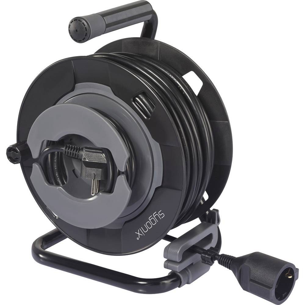 Eigenschaften | Anschlusstyp A (bzw. Eingänge): Schutzkontakt-Stecker · Anschlusstyp B (bzw. Ausgänge): Schutzkontakt-Steckdose · Belastbarkeit (aufgerollt/abgerollt): 1000/ 3000 W · Einsatzort: Innenbereich · Gewicht: 4.1 kg · Herstellerfarbe: Schwarz, Grau · Kabel-Typ nach DIN/VDE: H05VV-F 3G 1,5 mm² · Kabelfarbe: Schwarz · Kabellänge: 30 m · Material: Kunststoff, Stahl · Nenn-Eingangsspannung: 230 V/AC · Plastikfreie Verpackung: Plastikfreie Verpackung · Steckdosen-Anzahl: 1 · Steckerausführung: einseitig gewinkelt |