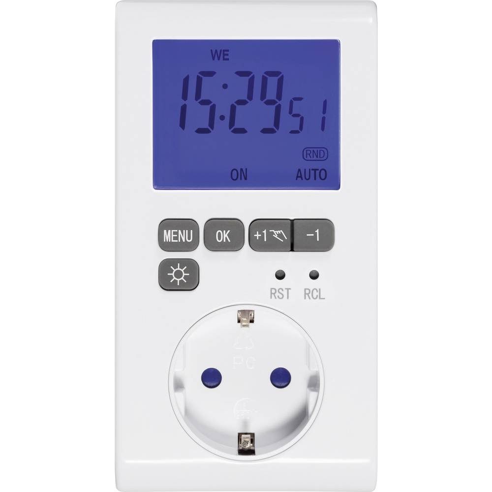Eigenschaften | Anzahl Schaltprogramme: 16 · Betriebsspannung: 230 V/AC · Einsatzort: Innenbereich · Herstellerfarbe: Weiß · Kürzeste Schaltzeit: 1 min · Produktabmessung, Breite: 70 mm · Produktabmessung, Höhe: 80 mm · Produktabmessung, Tiefe: 133 mm · Schaltleistung (max.): 3680 W · Schaltstrom (max.): 16 A · Schaltuhren-Besonderheiten: Countdown-Funktion, Timer-Funktion · Schaltuhren-Typ: digital · Schaltzyklus (LOV): Wochenprogramm · Schutzart: IP20 · Sommer-/Winter-Zeitumstellung: manuell |