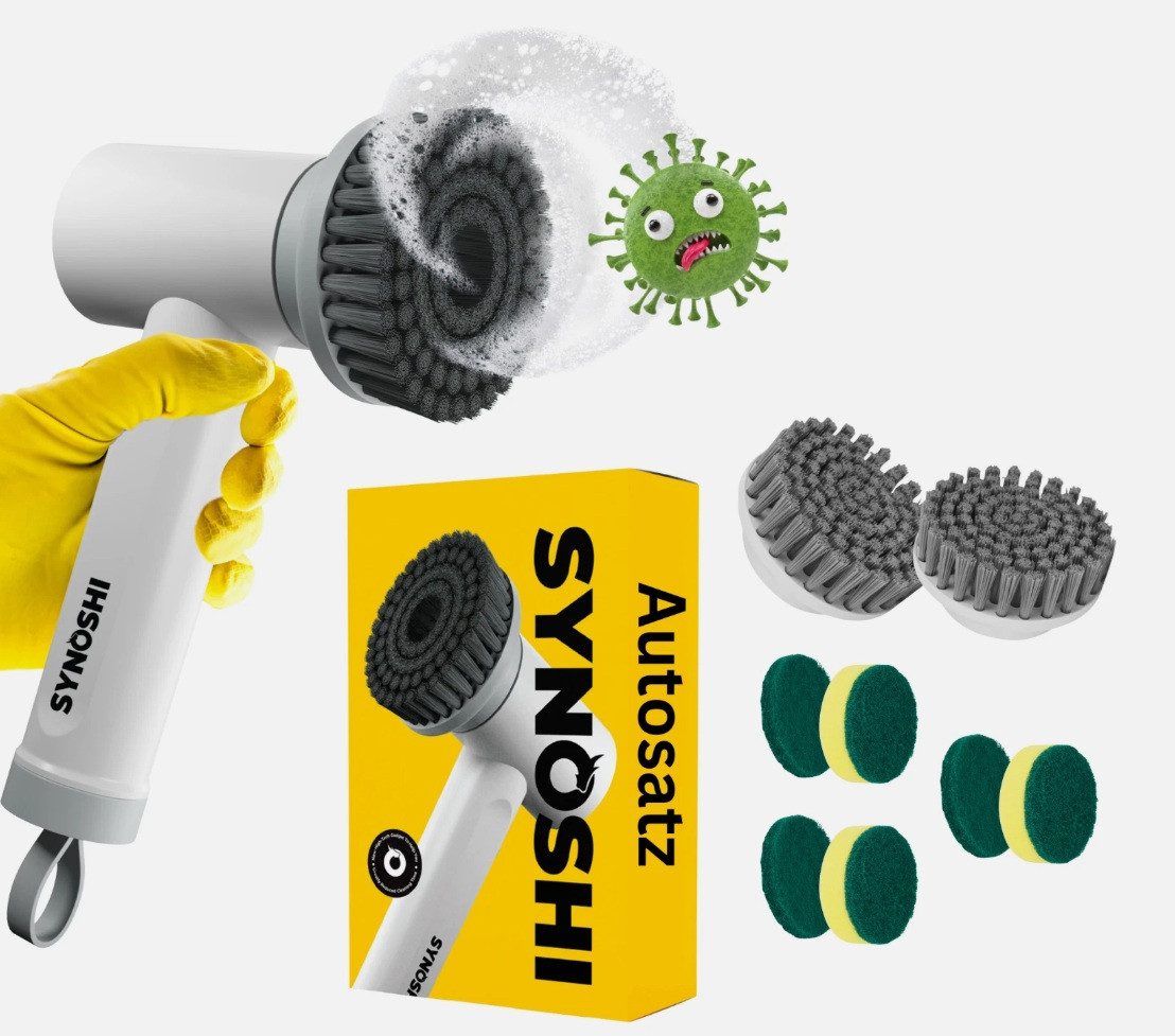 SYNOSHI Power Spin Scrubber – Für alle, die es wirklich sauber wollen. Mehr Sauberkeit. Weniger Aufwand. Mehr Zeit für dich. Die elektrische Reinigungsbürste von SYNOSHI ist dein leistungsstarker Helfer gegen Schmutz, Kalk und Ablagerungen – überall dort, wo klassische Reinigungsgeräte versagen oder dir kostbare Zeit rauben. Ob im Bad, in der Dusche oder auf Fliesen: SYNOSHI nimmt dir das Schrubben ab – gründlich, leise und effizient. Zeitsparende Innovation – Mehr Reinigung in der Hälfte der Zeit Mit der fortschrittlichen Rotationstechnologie sorgt SYNOSHI dafür, dass sich selbst hartnäckiger Schmutz mühelos löst – ganz ohne Druckausübung oder kräftezehrendes Schrubben. Die rotierende Bürste übernimmt die Arbeit für dich – du führst nur noch. Leistungsstark gegen Schmutz – Sanft zu Oberflächen Die Kombination aus zwei präzise abgestimmten Geschwindigkeitsstufen und drei spezialisierten Reinigungsaufsätzen macht SYNOSHI zum flexiblen Всеskönner: Rundbürste: Ideal für Badewannen, Waschbecken, Armaturen Kegelbürste: Perfekt für Fugen, Ecken und schwer zugängliche Bereiche Flachbürste: Optimal für größere Flächen wie Fliesenwände oder Böden Ob in der Küche, im Badezimmer oder auf dem Balkon – SYNOSHI sorgt für strähnenglänzende Sauberkeit, ganz ohne aggressive Chemie. Kabellos. Wiederaufladbar. Immer einsatzbereit. Der leistungsstarke 1200 mAh Lithium-Akku ermöglicht eine Laufzeit von bis zu 45 Minuten nach nur 1,5–2 Stunden Schnellladung. Dank USB-Aufladung ist das Gerät auch unterwegs, im Ferienhaus oder beim Camping unkompliziert aufladbar – ganz ohne Steckdosenzwang. Ergonomisch. Wassergeschützt. Komfortabel. IPX5-wasserfestes Gehäuse – ideal für den Einsatz in feuchten Umgebungen Rutschfester Griff für sicheren Halt auch mit nassen Händen Leicht und handlich, aber kraftvoll im Betrieb Du musst dich nie wieder bücken, schrubben oder riskieren, dir Haut und Gelenke zu reizen – SYNOSHI übernimmt das für dich. Das perfekte Geschenk – für ein sauberes Zuhause & freie Zeit. SYNOSHI ersetzt eine Vielzahl traditioneller Reinigungswerkzeuge – und ist damit nicht nur eine echte Hilfe im Alltag, sondern auch ein durchdachtes Geschenk für Familie, Freunde oder alle, die sich ein müheloses Reinigungserlebnis wünschen. Technische Daten im Überblick: Marke: SYNOSHI Produkttyp: Elektrischer Drehschrubber Akku: 1200 mAh Lithium (USB-Ladung) Ladezeit: ca. 1,5–2 h Laufzeit: ca. 45 min Geschwindigkeiten: 2 Modi (niedrig & hoch) Reinigungsaufsätze: 3 Stück (rund, konisch, flach) Schutzklasse: IPX5 wasserdicht Размер & Gewicht: handlich, ca. 600 g