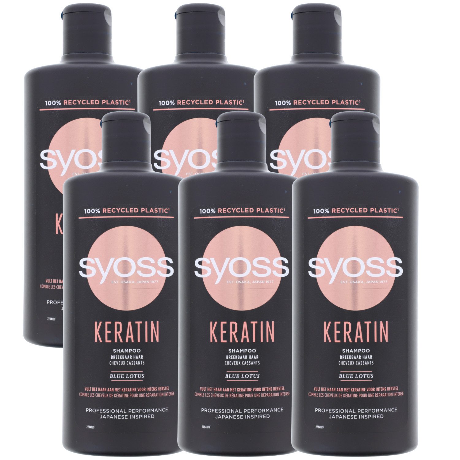 Haarshampoo 6 x Syoss Professional Keratin Shampoo mit Blauen Lotus je 440 ml Für
