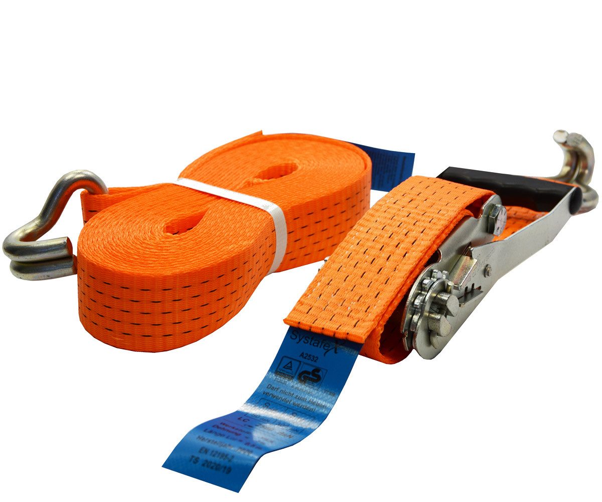 Unser Spanngurt mit Ratsche ist ein unverzichtbares Werkzeug für alle, die Wert auf eine sichere Befestigung ihrer Ladung legen. Das Set besteht aus einem neonorangefarbenen Gurt mit einer Длина von 8 Metern und einer Breite von 50 mm sowie einer robusten Ratsche mit Metallhaken an beiden Enden. Die hohe Belastbarkeit des Gurtes macht ihn ideal für den Einsatz in verschiedenen Bereichen wie dem gewerblichen Transport, auf Baustellen oder beim Camping. Der Gurt ist einfach zu bedienen dank des komfortablen Kunststoffgriffs an der Ratsche, was das Verzurren zum Kinderspiel macht. Beachten Sie stets die maximale Zugkraft und überprüfen Sie den Gurt vor jedem Gebrauch auf mögliche Schäden. Bei Kontakt mit scharfen Kanten empfehlen wir die Verwendung eines Kantenschutzes, um die Lebensdauer des Gurtes zu verlängern. Reinigen Sie den Gurt ausschließlich mit Wasser, um seine Integrität zu bewahren. Wichtig: Dieser Zurrgurt darf nicht zum Heben von Lasten verwendet werden!