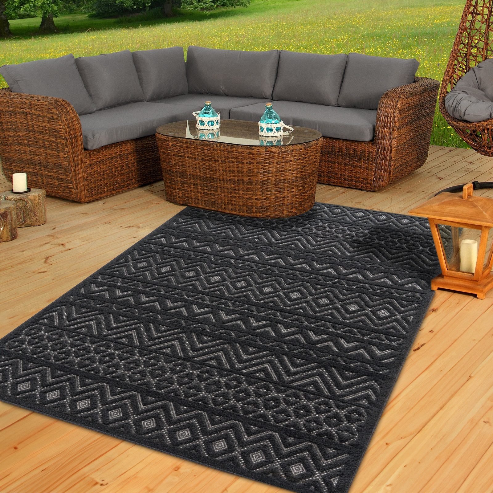 Gefertigt aus hochwertigem Polypropylen, zeichnet sich dieser Teppich durch seine Langlebigkeit und Widerstandsfähigkeit gegen Feuchtigkeit und Schimmel aus. Das trendige Boho-Muster verbindet moderne und traditionelle Elemente und bringt Leben in jeden Raum, sei es im Wohnzimmer, Essbereich oder auf der Terrasse.
