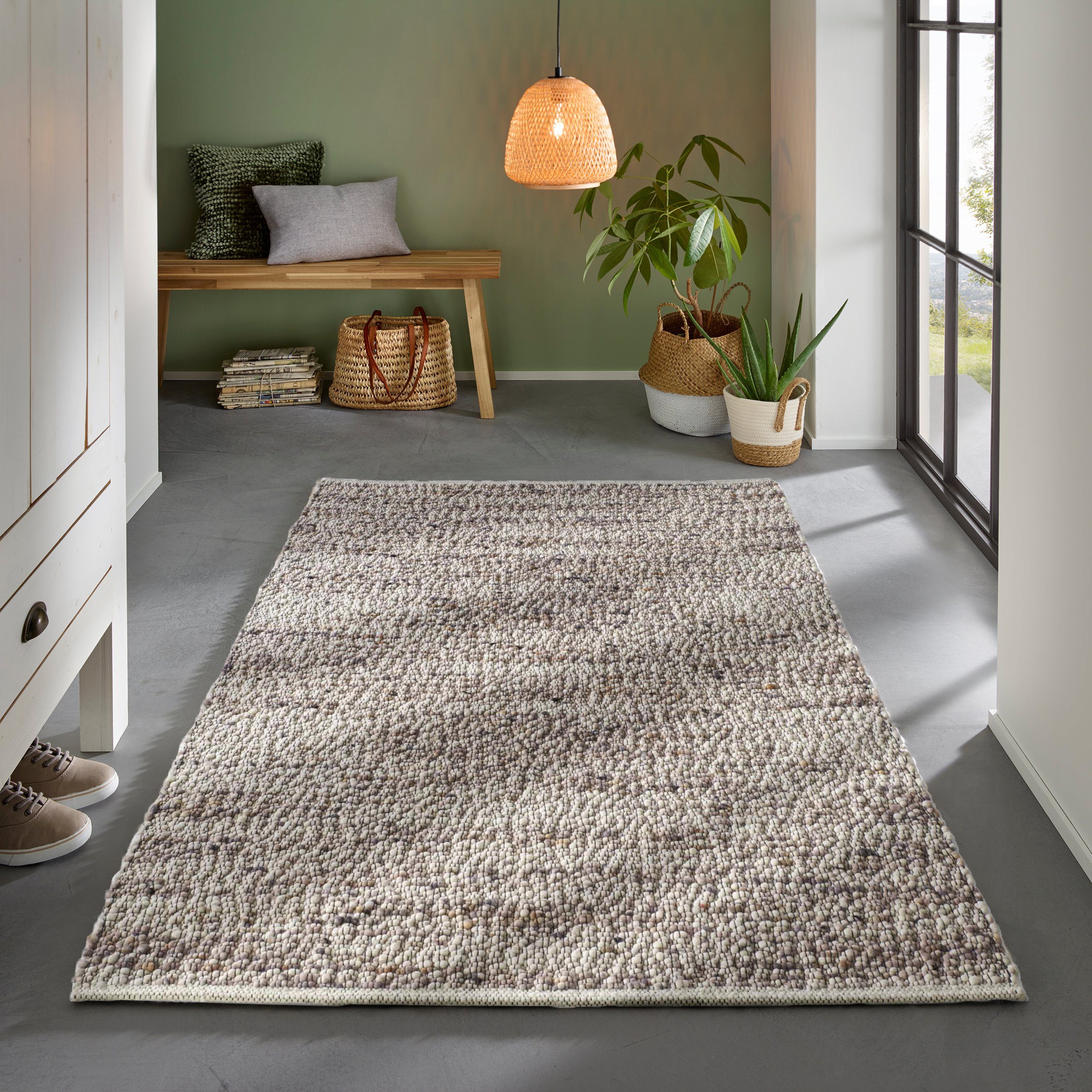 Naturmaterialien haben ihre eigene, unverwechselbare Charakteristik. So können bei diesem Teppich kleine Abweichungen in Farbe und Размер auftreten, die seine handgefertigte Qualität und Einzigartigkeit unterstreichen.