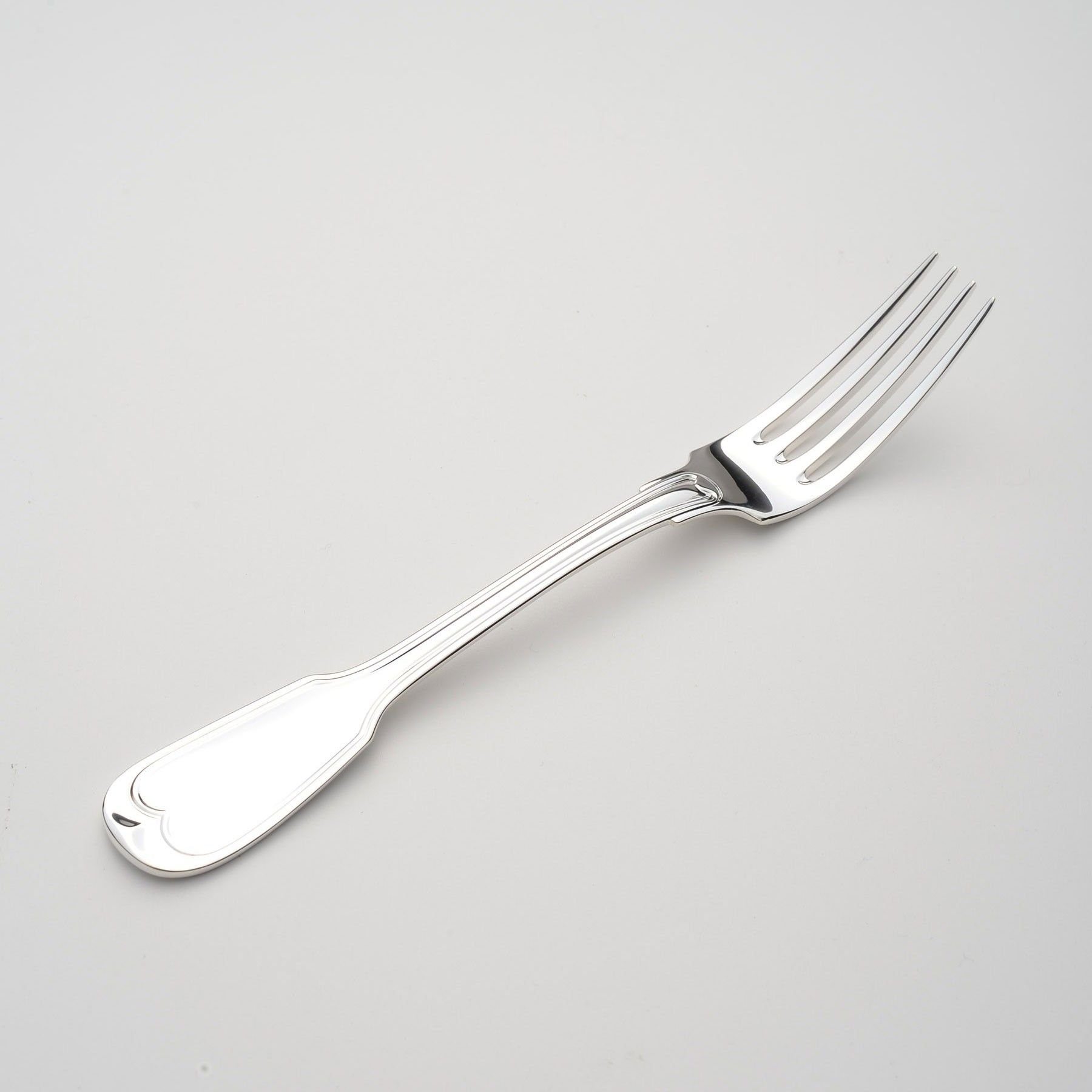 Hochwertige Menügabel von WILKENS in Sterling Silber - Muster Augsburger Faden. Впередe Besteck Teile erhältlich für einen stilvoll gedeckten Tisch! Auf Wunsch mit WILKENS Meister Gravur Als Reaktion auf barocke Pracht und die Verspieltheit des Rokoko entstand zu Beginn des 19. Jahrhunderts dieses von strengen Linien bestimmte klassizistische Design. Typisch ist die klare Formgebung, charakteristisch der umlaufende Faden. Um 1850 wurde Augsburger Faden in die Wilkens-Kollektion aufgenommen – und hat seitdem nichts von seiner Wirkung verloren. Die tägliche Nutzung Ihres WILKENS Silberbesteck verhindert ein Anlaufen (oxidieren) der Besteckteile. WILKENS Silberbestecke dürfen gerne im Geschirrspüler gereinigt werden. Für die besondere Silberpflege empfehlen wir die Pflegeprodukte aus dem Pflegemittelsortiment von Hagerty - erhältlich im WILKENS Onlineshop. So bewahren Sie den Glanz und die Freude an Ihrem WILKENS Tafelsilber.