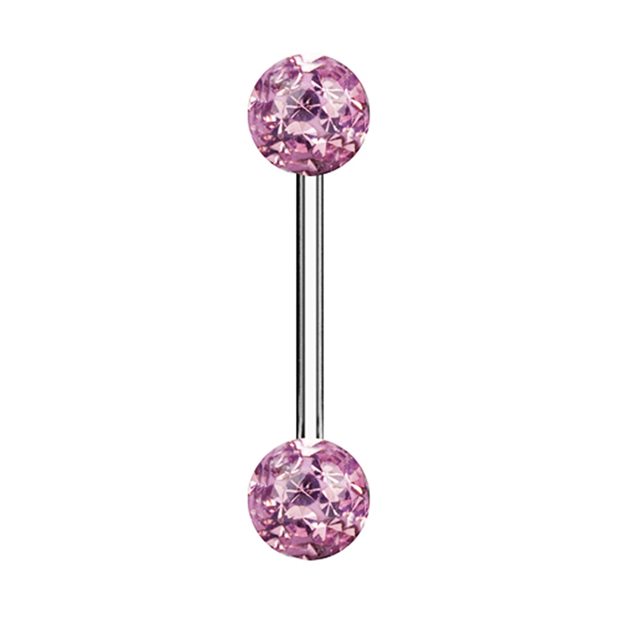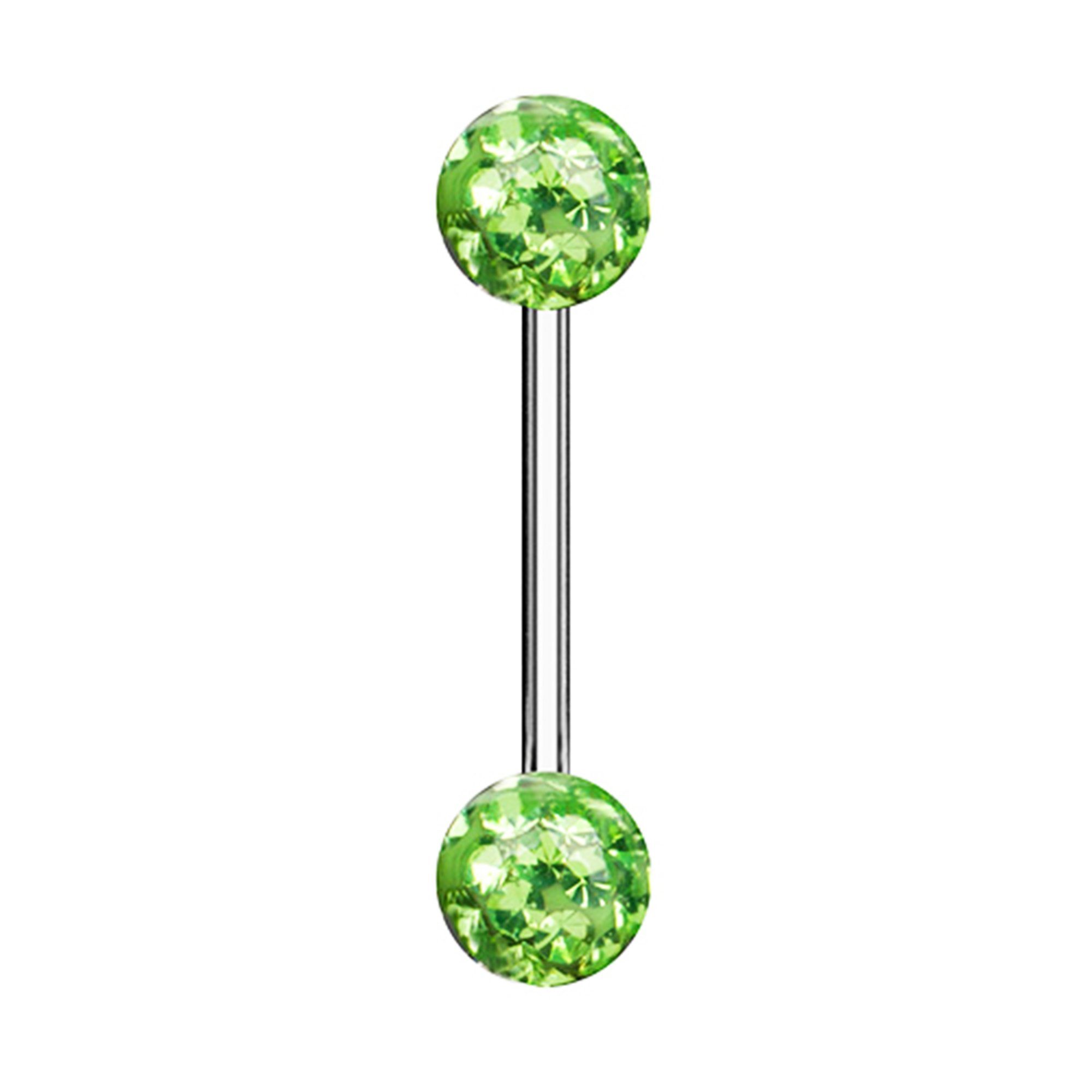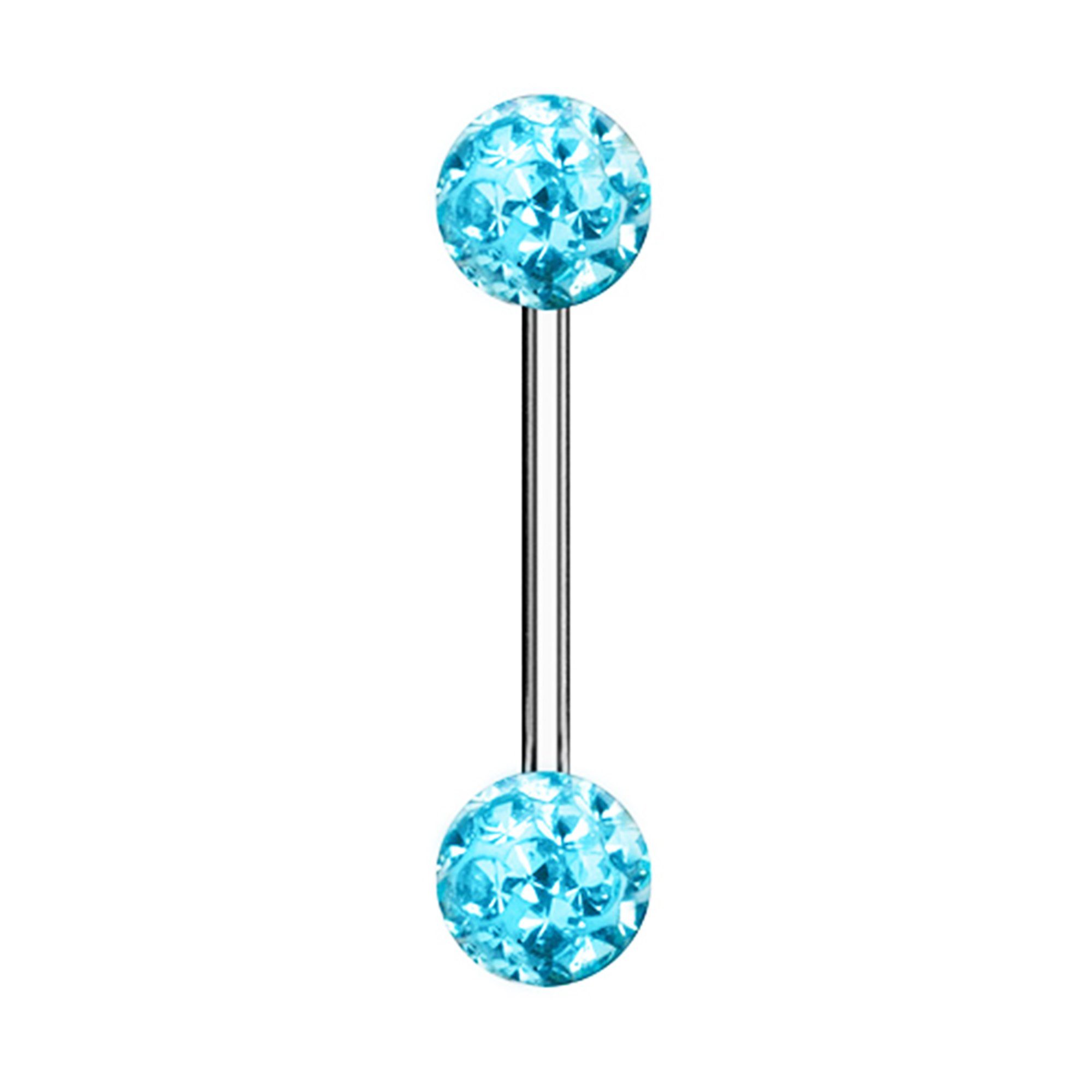 Die Kugeln bestehen aus Ferrido-Kristallen, die zusätzlich mit einer Epoxid-Beschichtung versehen sind. Dadurch erhalten sie nicht nur einen besonderen Glanz, sondern sind auch widerstandsfähig und behalten ihre Farbintensität über lange Zeit. Das moderne Kristall-Design macht dieses Piercing zu einem echten Blickfang.