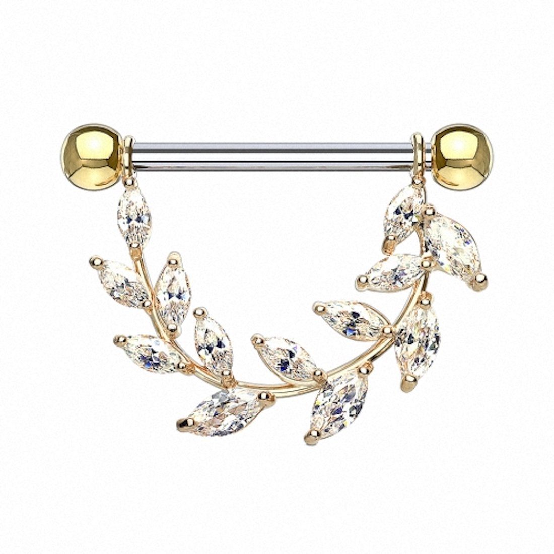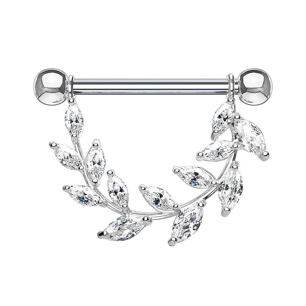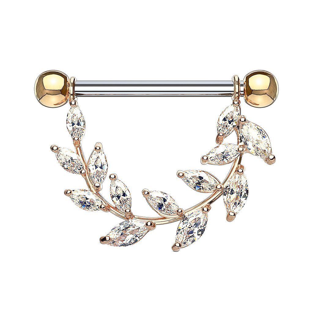 Besondere Merkmale | Intim Brustwarzenpiercing Hantel Barbell Anhänger filigran Farn Blatt |