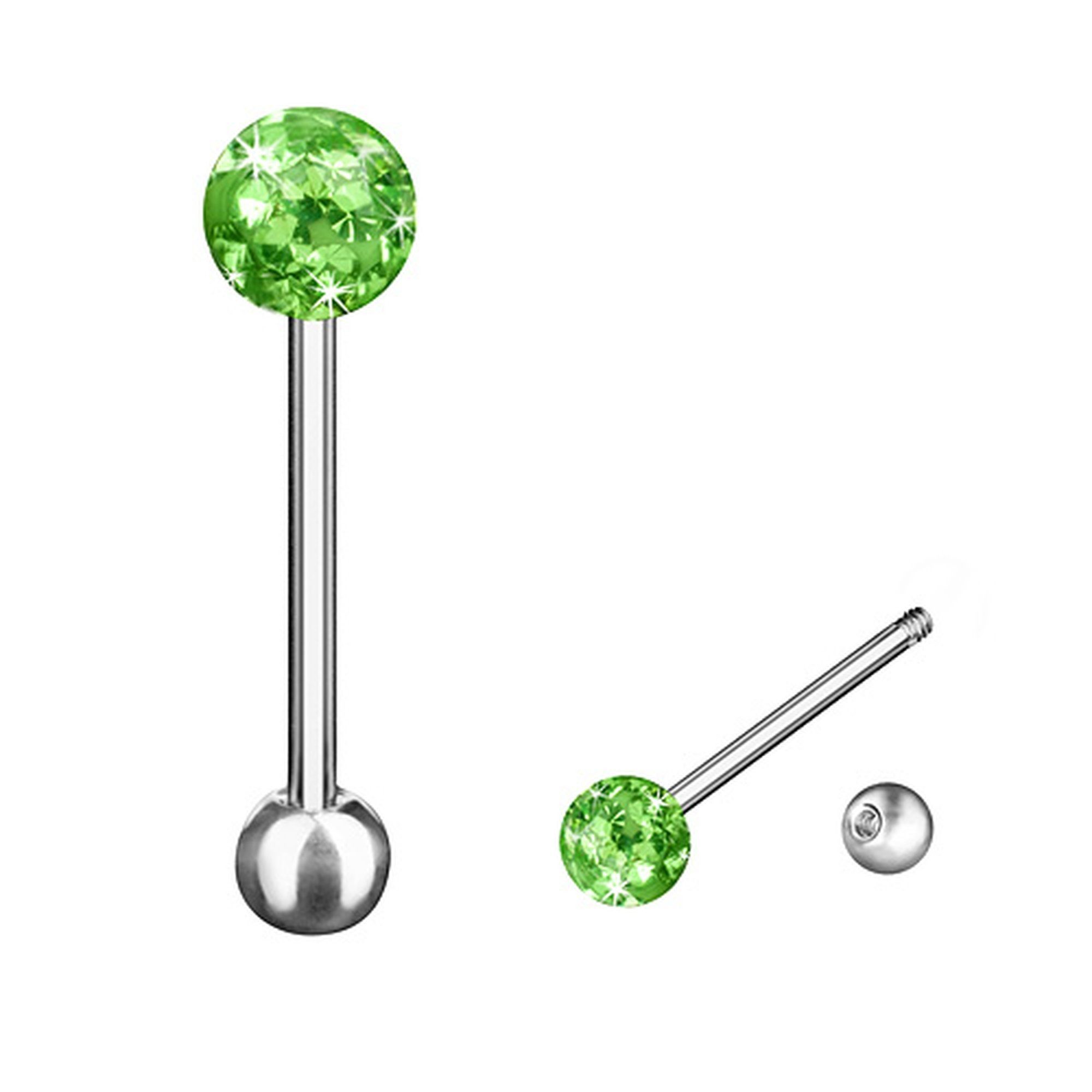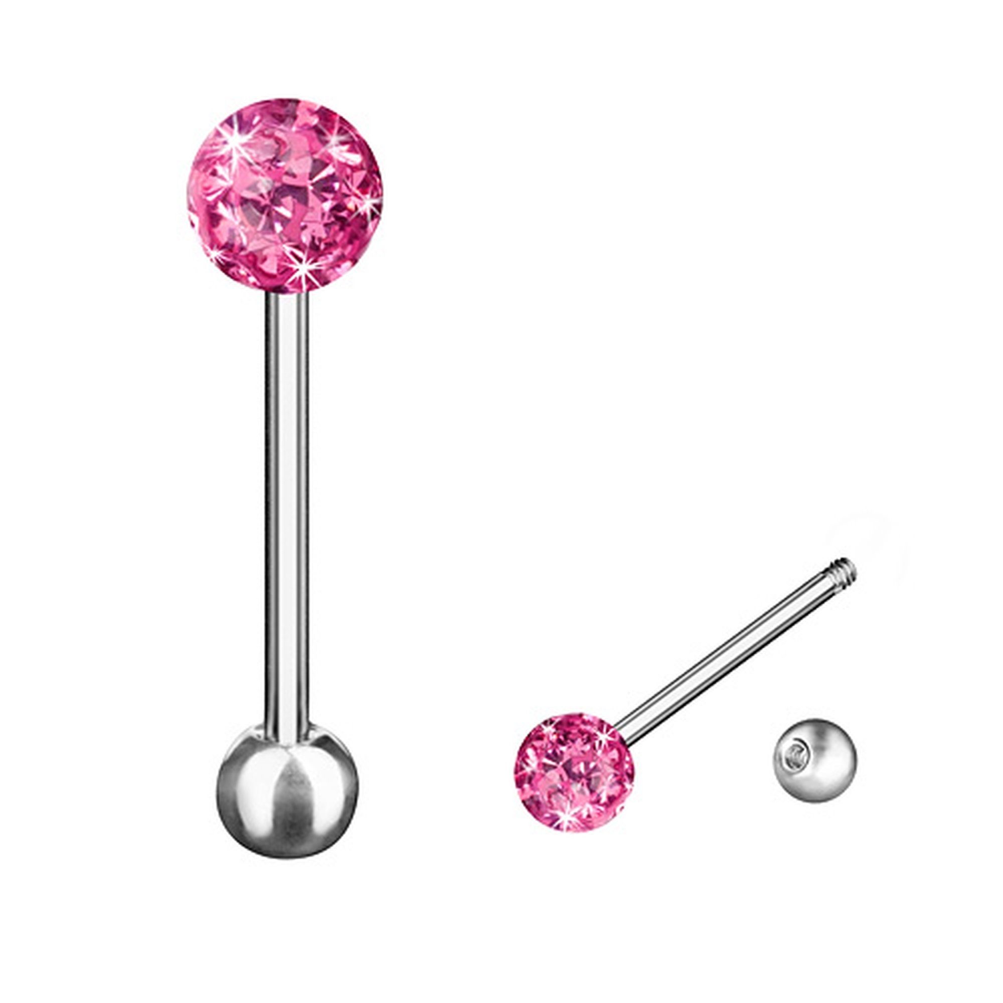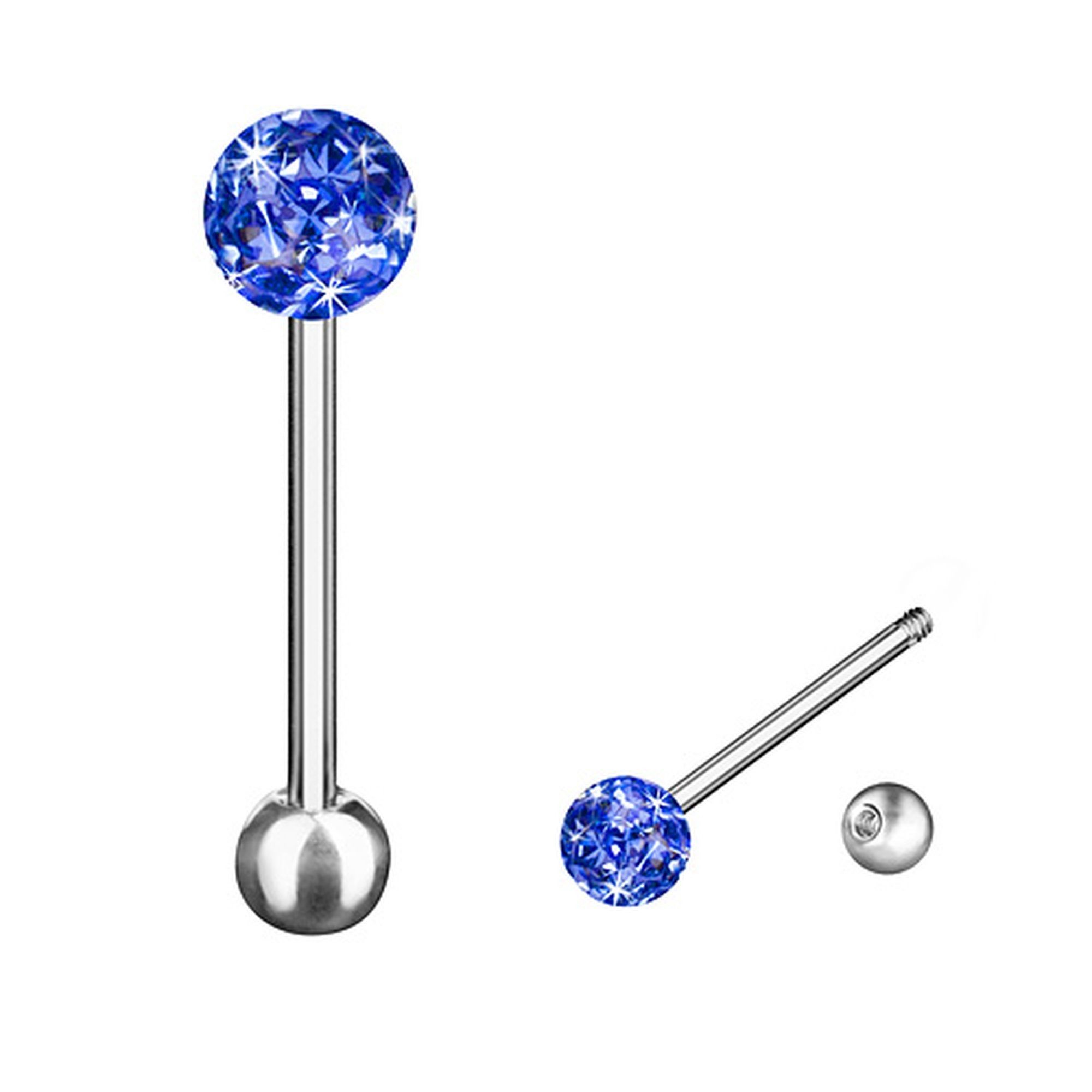 Besondere Merkmale | Barbell Stab Piercing Hantel Zunge mit funkelnder Kristall Kugel |