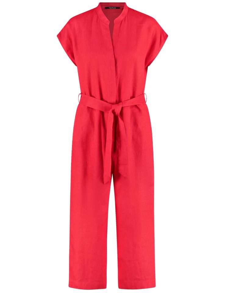 Lässiger Leinen-Jumpsuit von Taifun mit Kurzarm, Bindegürtel und weitem ¾ Bein. Ideal für stilvolle Sommer-Looks – bequem, feminin und luftig-leicht.