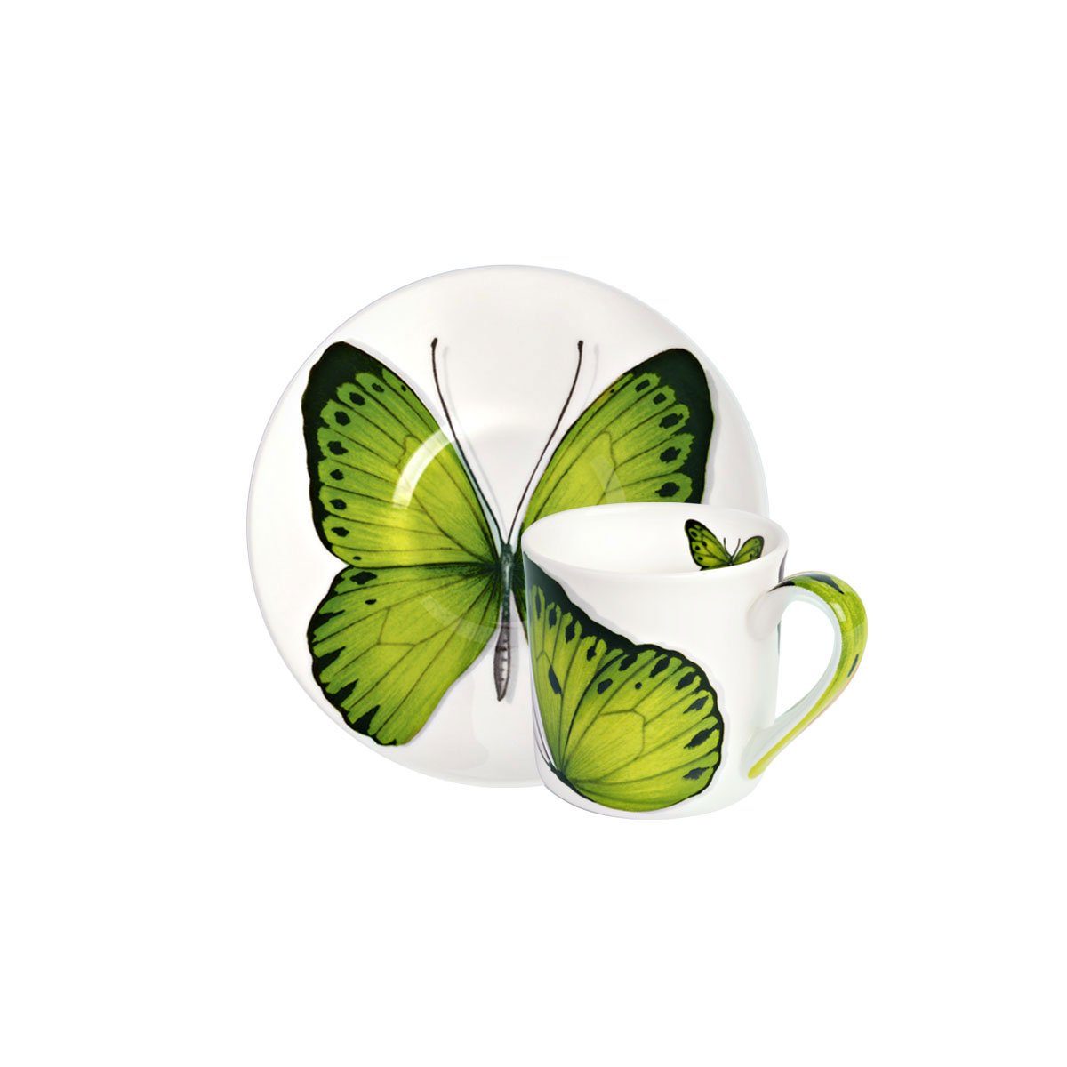 Taitù Freedom - Espressotasse m/U, grün "Taitu Freedom: Всеs, was der Sommer hergibt" verwandelt Ihre Tafel in einen blühenden Sommergarten, der mit Blüten, Blättern, Obst, Gemüse und Schmetterlingen verzaubert ist. Diese Serie ist in vielerlei Hinsicht einzigartig. Jede Form ist als Satz mit vier unterschiedlichen Dekoren erhältlich. Die lebendige und farbenfrohe Kollektion mit über 40 Einzelteilen besticht durch ihre große Detailgenauigkeit und die vielfältigen Kombinationsmöglichkeiten. Jedes Teil ist ein Unikat, doch zusammen bilden sie eine harmonische Einheit, die Ihre Tischdekoration zu etwas Besonderem macht.