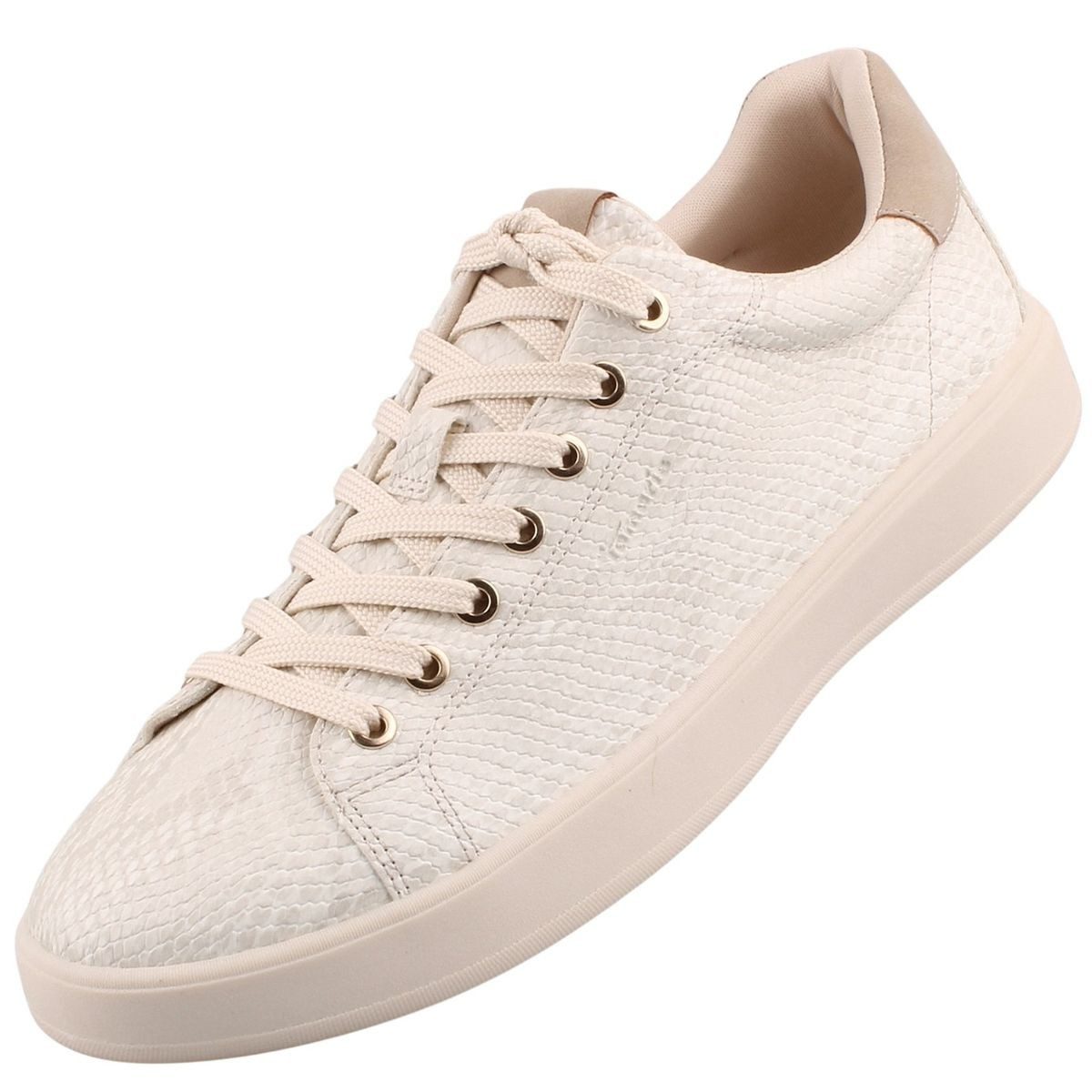 Trendiger Sneaker aus Kunstleder. Schlichtes Design, daher zu vielen Outfits kombinierbar. Textiler Innenraum mit herausnehmbarer Decksohle. Flache Synthetiksohle mit 3 cm Höhe.