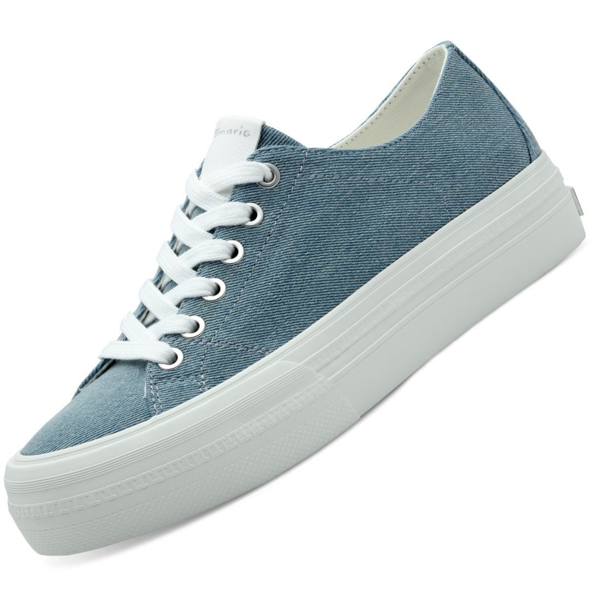 Die schlichte Optik der Canvas Sneaker wird Sie begeistern. Im Innenschuh aus recyceltem Textilfutter werden sich Ihre Füße garantiert wohlfühlen. Die 35-mm hohe Plateausohle sorgt für einen coolen Look.