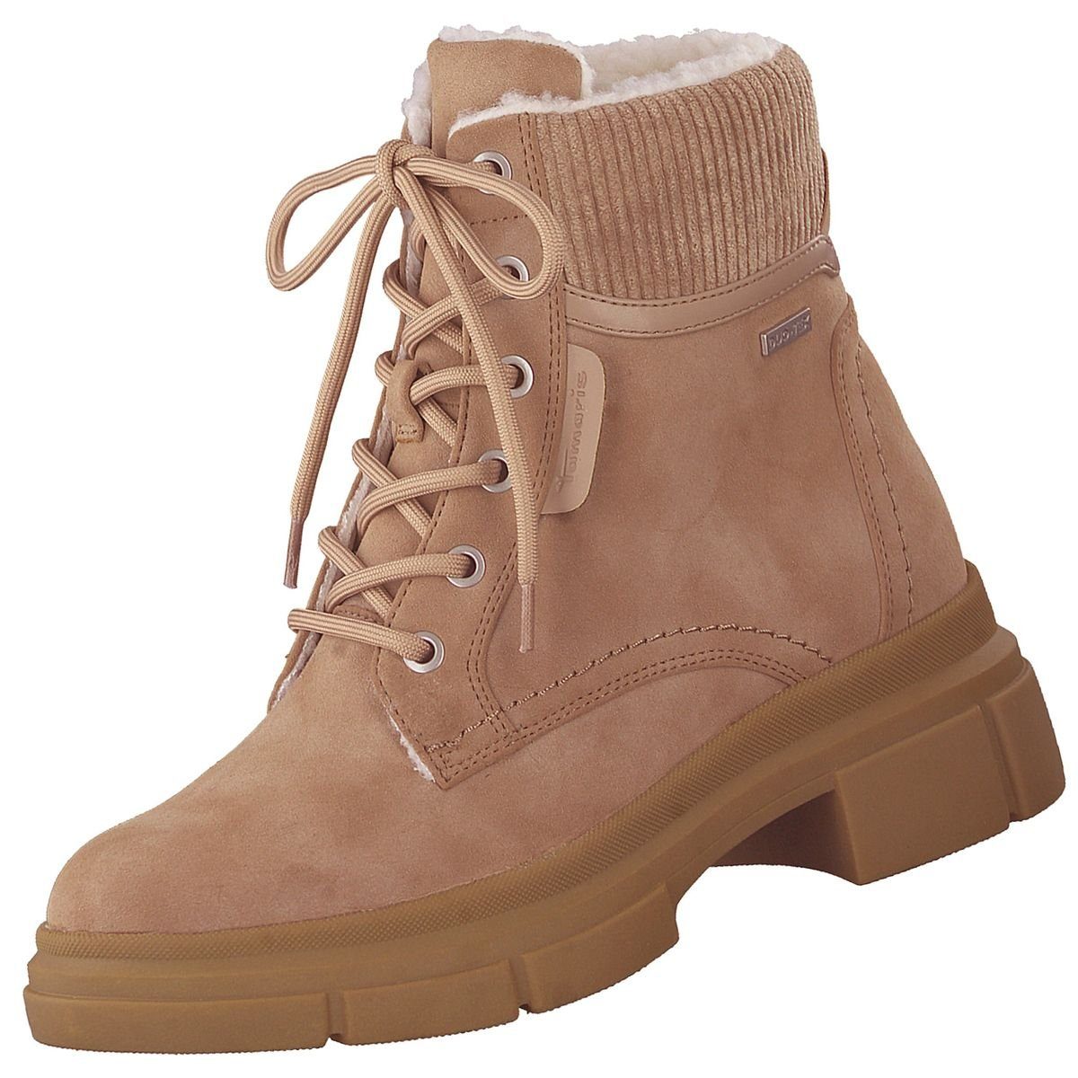 Nicht nur modisch ansprechend, sondern auch noch funktional. So kann man diesen Winterstiefel aus Kunstleder bezeichnen. Innen komplett mit Teddyfutter ausgekleidet hält er ihre Füße warm. Das weiche Touch-it Fußbett passt sich bereits nach kurzer Tragezeit Ihrer Fußform an und sorgt für höchsten Tragekomfort. Die DUO-TEX Membrane ist atmungsaktiv und verhindert das Eindringen von Nässe. 40 mm misst der Absatz der robusten Kunststoffsohle. Schafthöhe ca. 15 cm. Reißverschluss innenseitig.