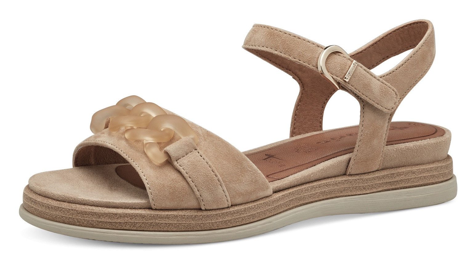 Besondere Merkmale | , Sommerschuh, Riemchensandale mit mattierter Zierkette |