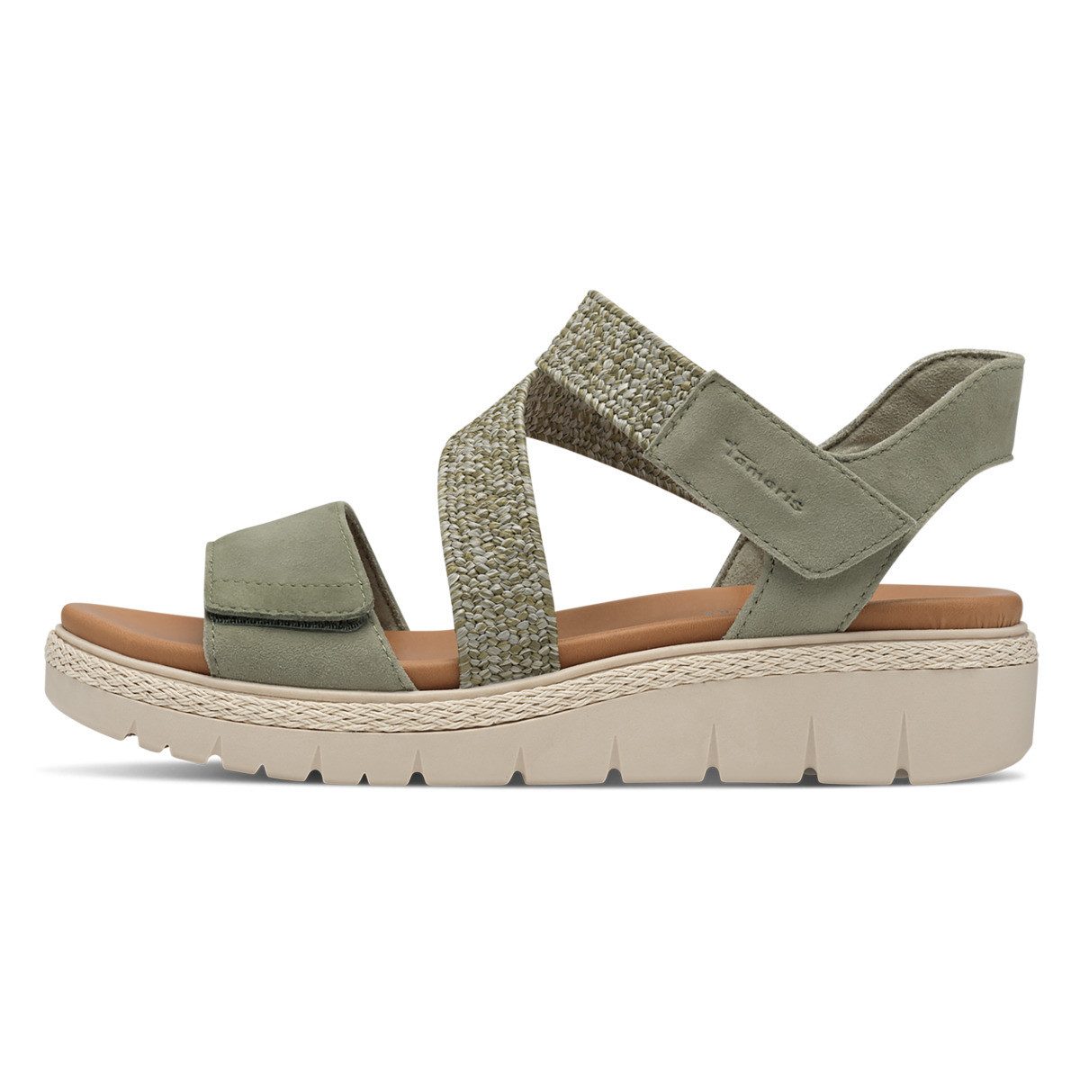 Mit den Keilsandaletten der Marke Tamaris bist du bereit für einen Spaziergang an der Strandpromenade. Mit den Klettverschlüssen kannst du den Schuh individuell in der Weite anpassen und ihn schnell an- und ausziehen.