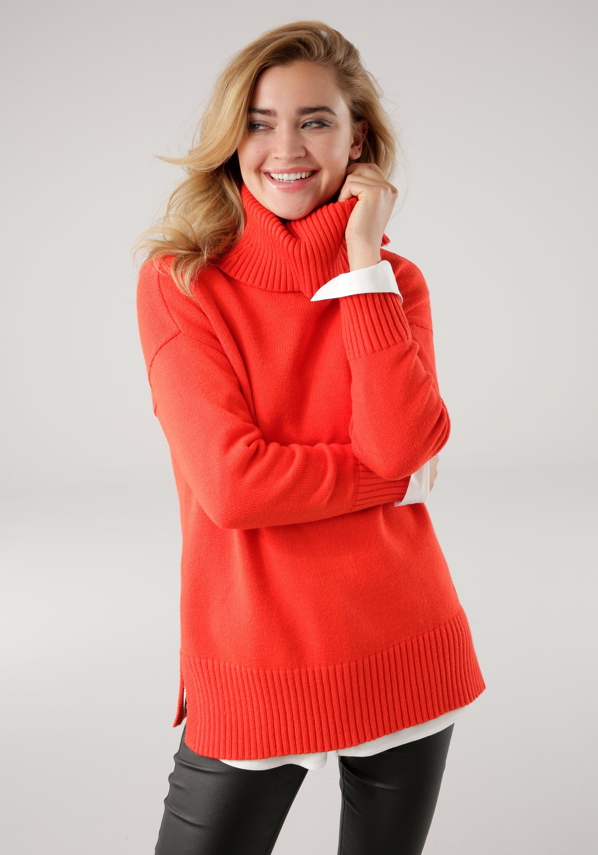 Damit du im Büro eine gute Figur machst, kombiniere zum Rollkragenpullover eine knöchellange, schmal geschnittene Stoffhose und elegante Pumps oder Boots. Als Ersatz für eine klassische Bluse kann das Oberteil auch für ein Vorstellungsgespräch angezogen werden. Kombiniere dazu eine weite Hose, Pumps und einen Gürtel.