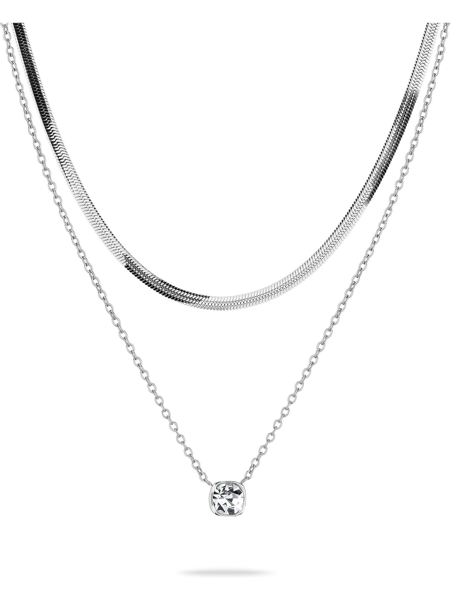 Diese Collierkette von Tamaris ist aus Edelstahl in der Farbe Silber gefertigt und der perfekte Begleiter für modebewusste Damen in jeder Situation, sei es in der Freizeit oder im Büro. Ihr Kettenanhänger ist mit 0,7 cm Длина und 0,7 cm Breite recht zierlich. Herrlich funkelnd fängt ein weißer Glasstein das Licht ein und bringt strahlenden Glanz. Die besonders lange Kette lässt sich mit 50 cm Длина gut über der Kleidung oder in Layering-Styles tragen. Die Oberfläche ist mit einer haltbaren und abriebfesten Edelmetall-Beschichtung in der Farbe Silber veredelt und poliert. Ein Schmuckstück, das dir mühelos Eleganz verleiht und sich als zeitloser Favorit in deiner Schmucksammlung etabliert.