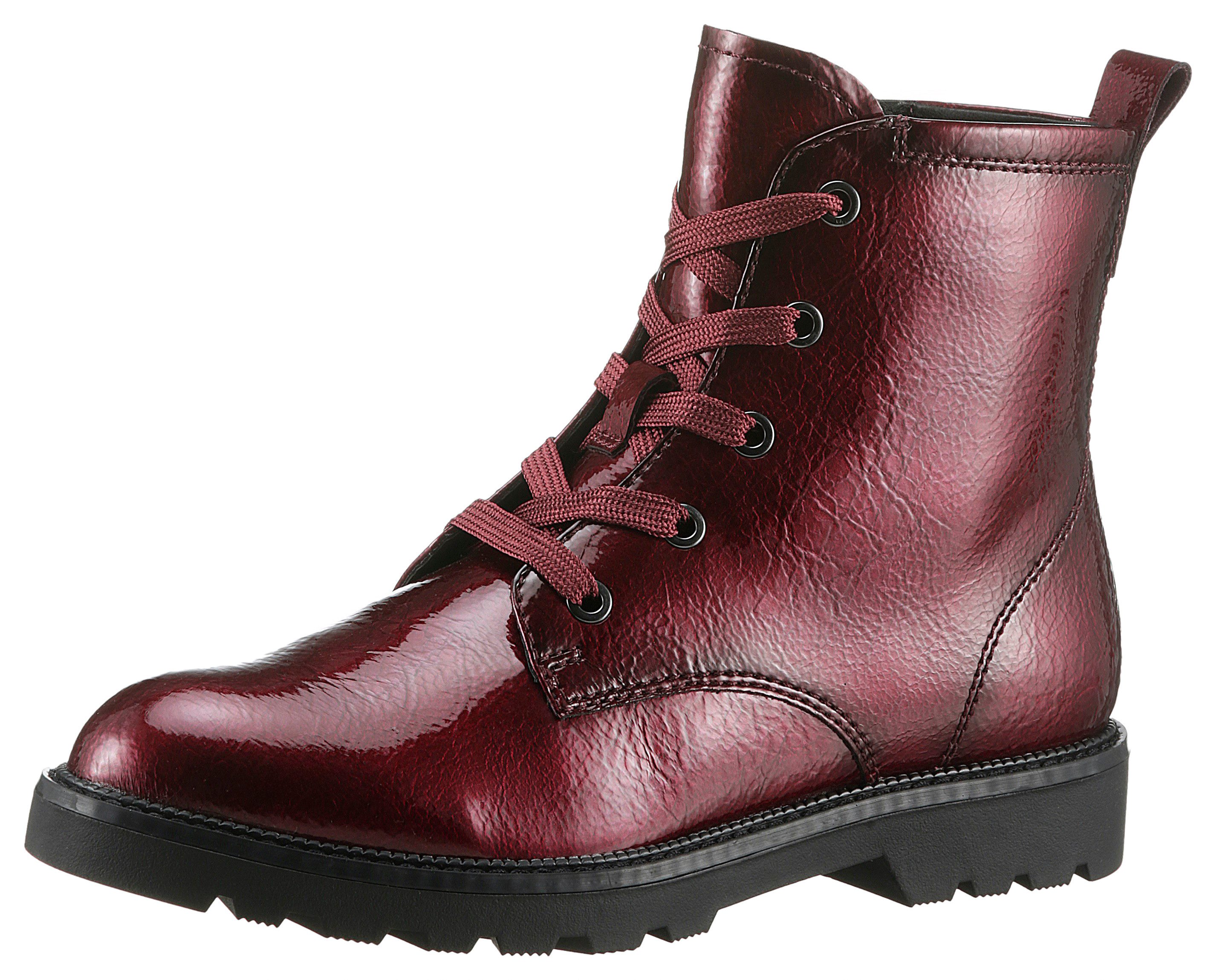 Mit dem Obermaterial aus Lacksynthetik sind die Schuhe glänzend und unempfindlich gegen Feuchtigkeit. Die Synthetik-Sohle der Schnürboots ist profiliert und sieht nicht nur lässig aus, sondern lässt dich auf glatter Straße nicht ausrutschen. Die gepolsterte Textil-Innensohle mit der "Touch It"-Technologie bietet zusätzlichen Komfort und unterstützt die natürliche Fußform. Dank dem Blockabsatz und der klassischen runden Schuhspitze sind die Schnürboots ausgesprochen bequem. Schmale bis normale Füße finden in diesen Schnürboots der Weite F optimalen Komfort.