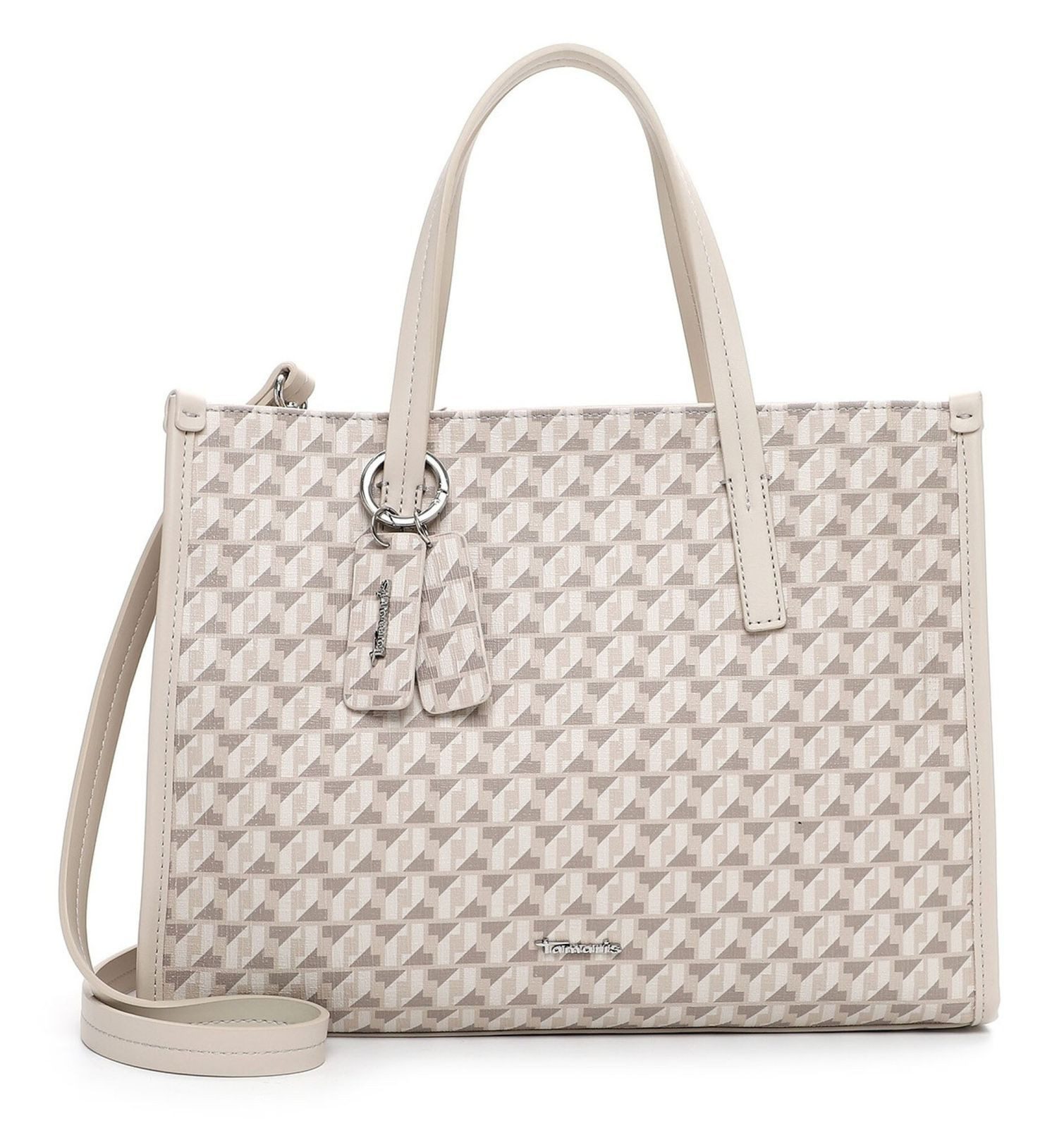 So wunderbar wie das Leben Eine Handtasche ist wie eine gute Freundin, sie lässt einen nie im Stich und man kann sich hundertpro auf sie verlassen. Mit TAS Francesca - dem schicken Shopper in strukturierter Optik mit Reißverschluss - ist die liebste neue Wegbegleiterin jederzeit dabei. Ob für Büro, Uni oder in der freien Zeit - mit ihm lässt sich einfach jedes Abenteuer bestreiten. Gefertigt ist das Modell, das sich mit einem Reißverschluss verschließen lässt, aus Feinsynthetik. Durch das Material ist es angenehm im Griff. Die strukturierte Optik und das Print-Design sind fein gearbeitet und verleihen dem Shopper einen edlen Look. Ob chic oder trendy, klassisch oder modern: Tamaris hat für jeden Style die große Auswahl an attraktiven Accessoires. Ordnung ist das halbe Leben. Ein übersichtliches Hauptfach und eine Reißverschluss-Mittelwand sind in der Tasche integriert. Ein Reißverschlussfach sichert Portemonnaie, Handy und andere wichtige Dinge vor Langfingern z. B. in der vollen Straßenbahn oder im Gewimmel in der Fußgängerzone. Ein Reißverschluss-Fach auf der Rückseite schafft zusätzlichen Stauraum und erlaubt den schnellen Zugang zu Dingen, die man immer griffbereit haben möchte. Das Modell TAS Francesca ist von der Haptik eher weich und daher wirklich angenehm zu tragen. Einen zusätzlichen Akzent setzt der hübsche Logo-Anhänger. Dieses neue Lieblingsstück wird dank längenverstellbarem, abnehmbarem Umhängeriemen und zwei Tragegriffen einfach als Schultertasche getragen. Viel Platz für alles, was man als Frau so mit sich herumträgt, bietet der Shopper.