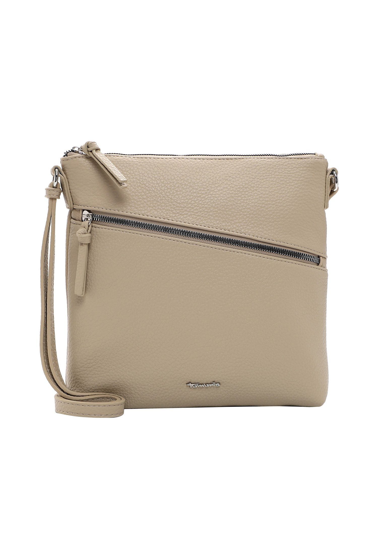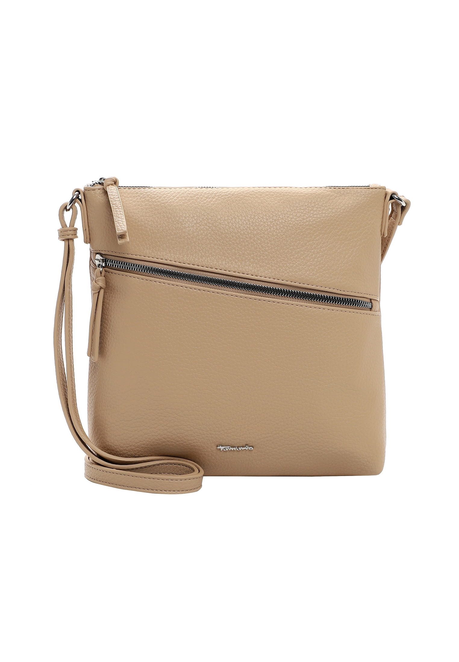 Umhängetasche mit 2 Außentaschen (Reißverschluss), 1 kleine Tasche innen mit Reißverschluss, 2 kleineren offenen Fächern innen und ein großer Stauraum in der Tasche, der eine gute Einsicht bietet und ebenfalls mit einem gut gängigen Reißverschluss zu schließen ist. Die Длина der Riemchen ist einstellbar (mit großem Spielraum) und die Breite der Riemchen ist ausreichend breit.