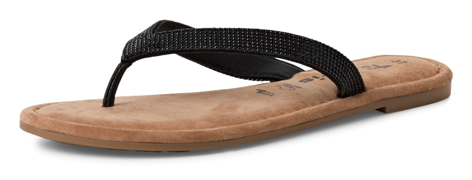 Mit den Zehentrennern der Marke Tamaris bist du bereit für einen Spaziergang an der Strandpromenade. Das Touch-it-Soft-Fußbett besteht aus einem flexiblen Memory-Foam-Material. Wie ein Kissen passt es sich durch das eigene Körpergewicht immer wieder deiner individuellen Fußform an und sorgt so für optimalen Tragekomfort. In den Schuh kannst du schnell hineinschlüpfen und bist somit direkt startklar.