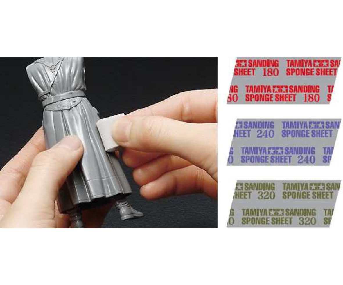Sandpapier/Schleifschwamm höchster Qualität zum Modifizieren und Vollenden (Finishing) von TAMIYA Modellen. Hervorragend zum Schleifen von Kunststoff, Holz, Faserverbundstoffen, Farben/Lacken und Metall. Die scharfkantige und dichte Streuung sorgt für ein gleichmäßiges Schleifbild auch im feinsten Kornbereich. Trocken und nass einsetzbar. Geringes Zusetzverhalten. Flexibles und reißfestes Papier. Hochflexibler und reißfester Schleifschwamm. Sehr gute Anpassung beim Schleifen von Konturen und Rundungen.