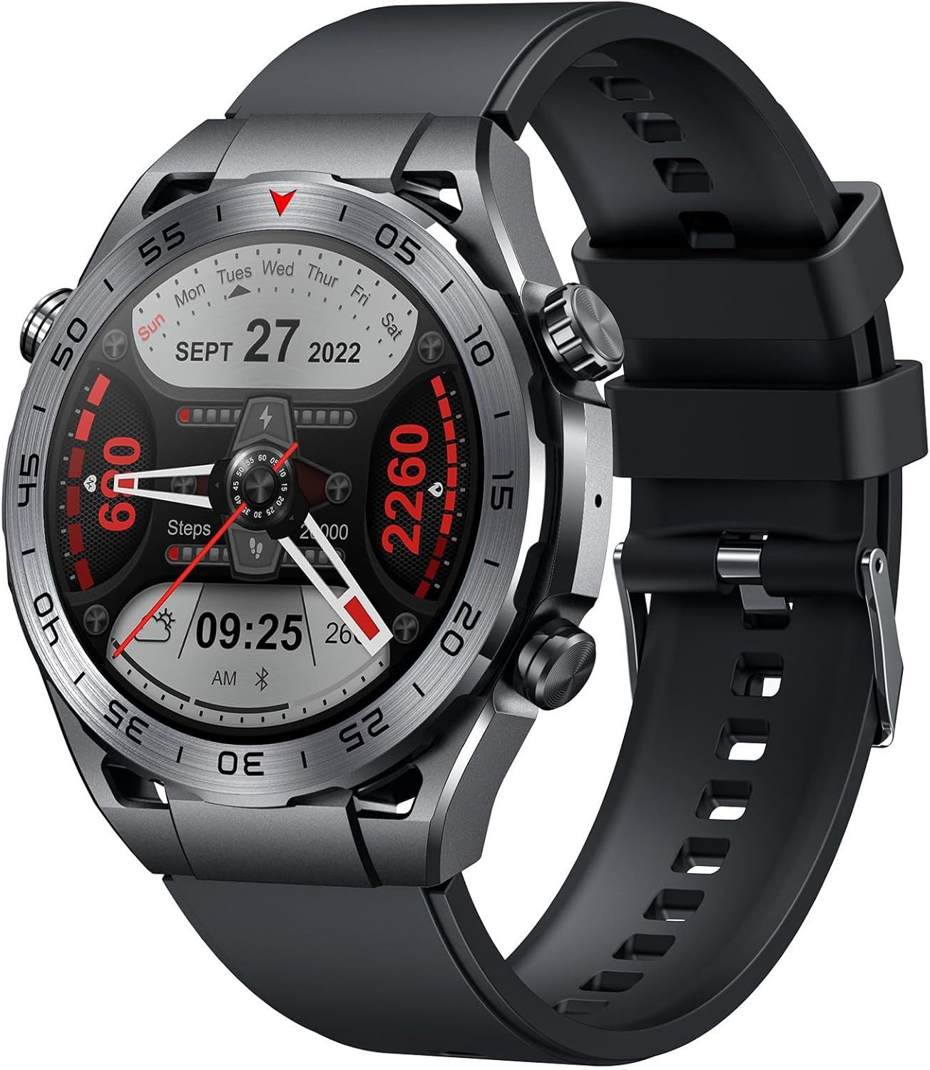 Das runde 1.42 Zoll Display bietet 360×360 Auflösung, Helligkeitsanpassung und reibungslose Steuerung. Wählen Sie aus über 100 Zifferblättern oder gestalten Sie Ihr eigenes Design.
