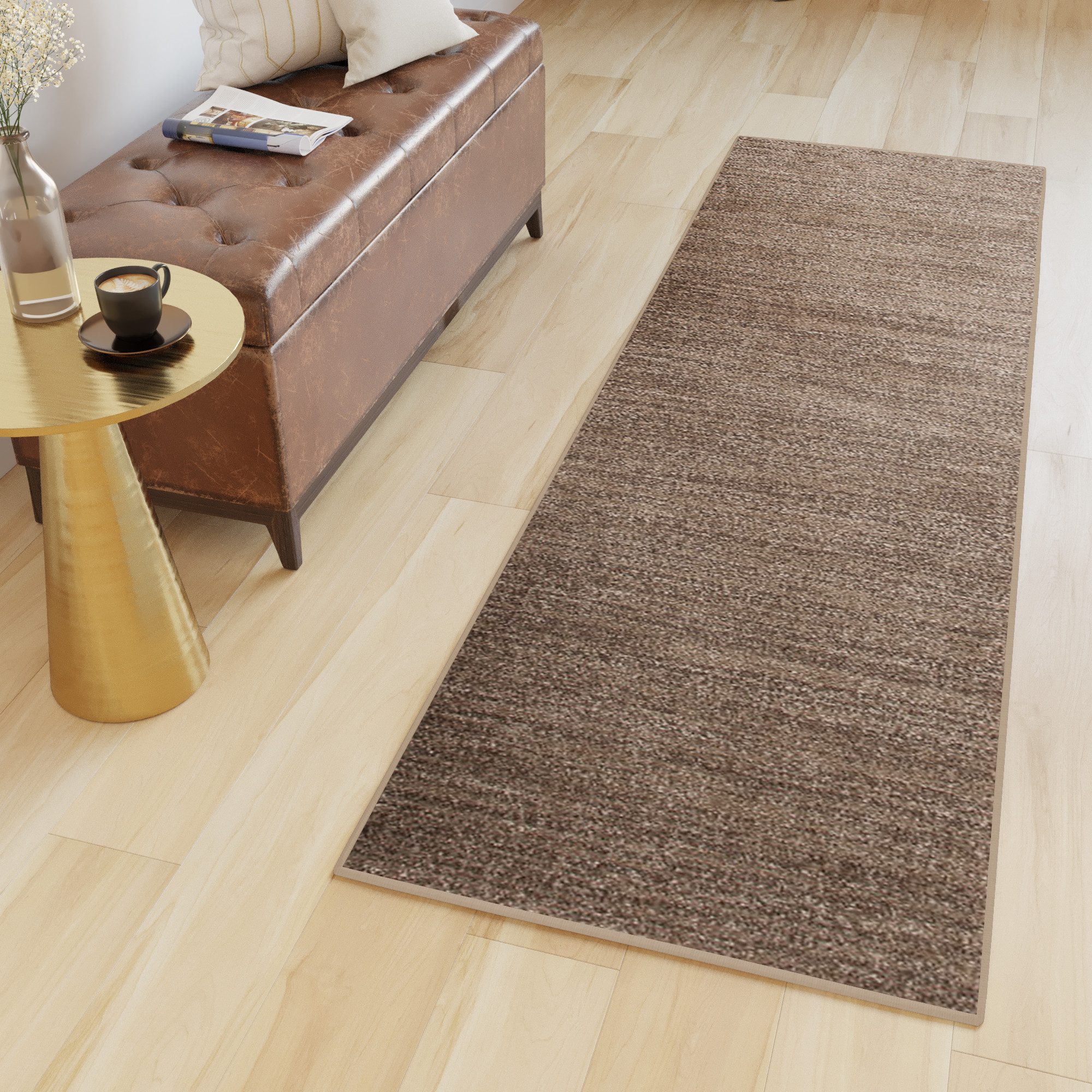 Sehr schöner und weicher Läufer. Je nach Richtung wirkt er mal heller und mal dunkler. Rutscht ein wenig.
