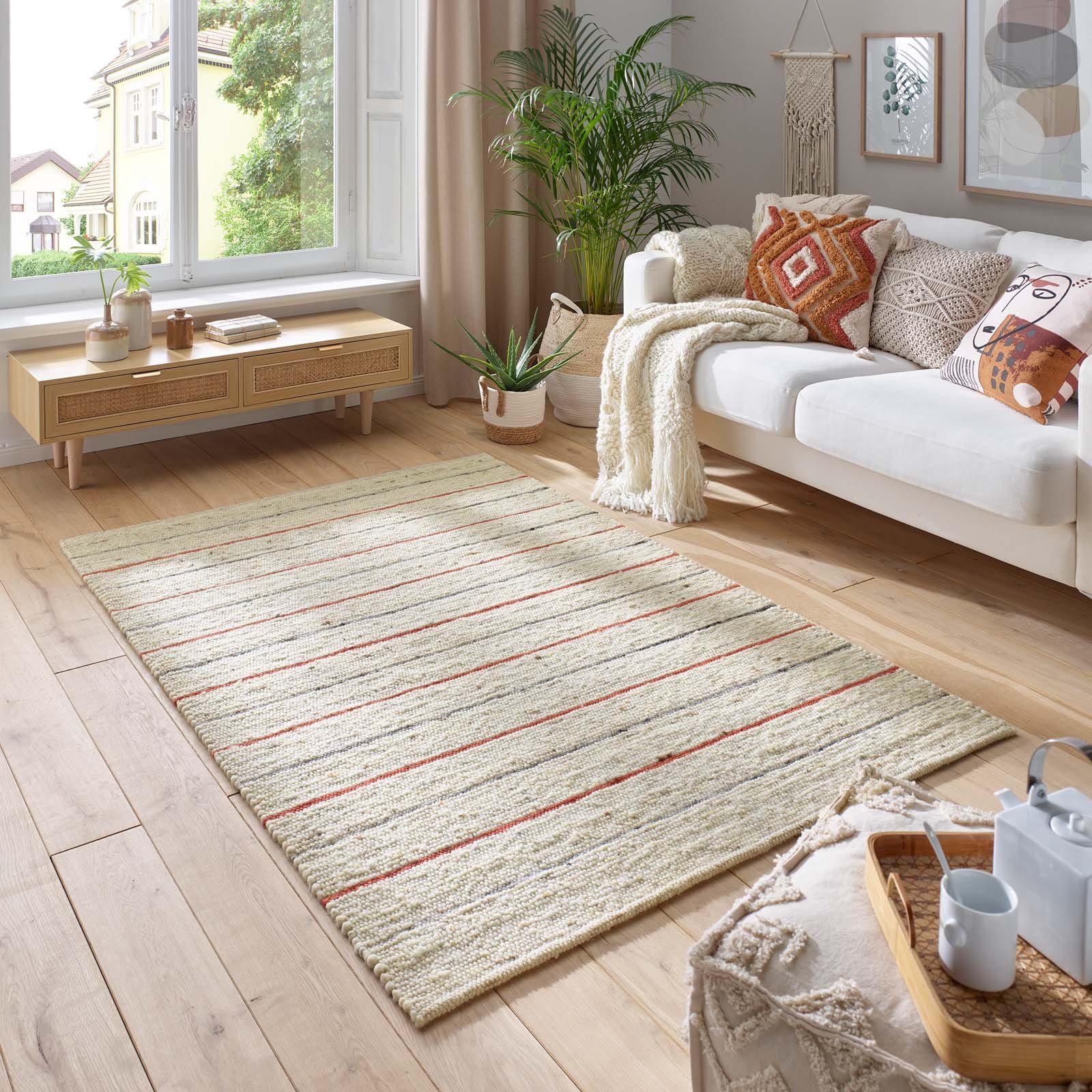 Materialzusammensetzung | Flor 100% gewalkte Schurwolle, Garnkern 100% Jute |