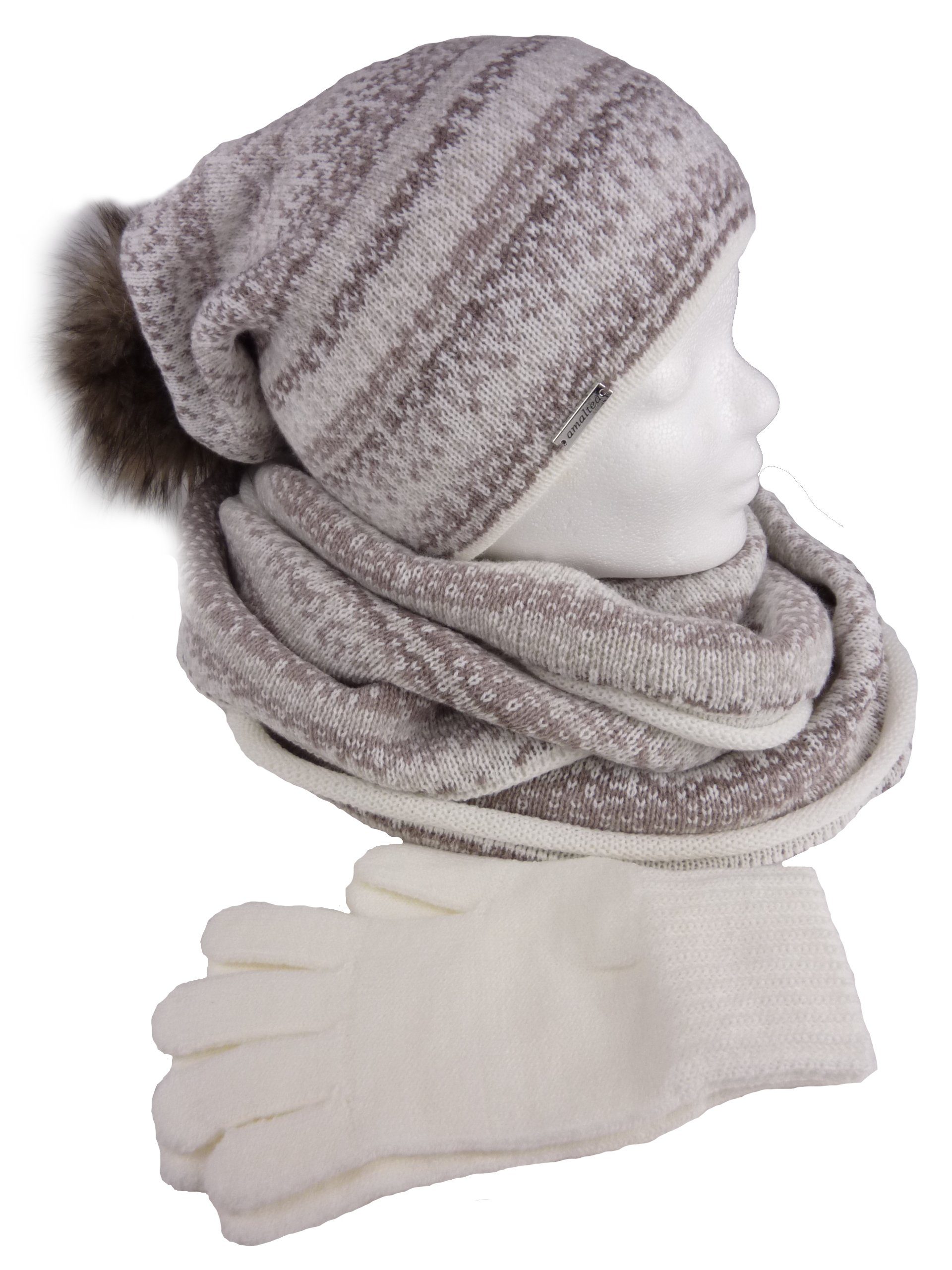 Das 3 teilige Damen Winterset aus dem Hause AMALTEA ist kuschelig warm, angenehm weich und passt perfekt in diese Herbst / Winter Saison.