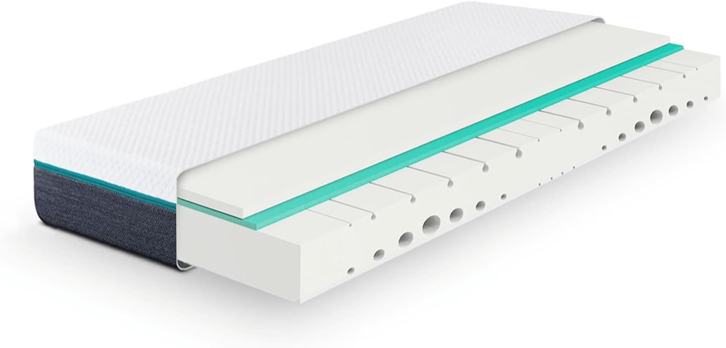 Die 7-Zonen-Federkernmatratze hat einen symmetrischen Aufbau. Die Matratze ist für alle Schlafpositionen geeignet, einschließlich Seiten-, Rücken- und Bauchlage.