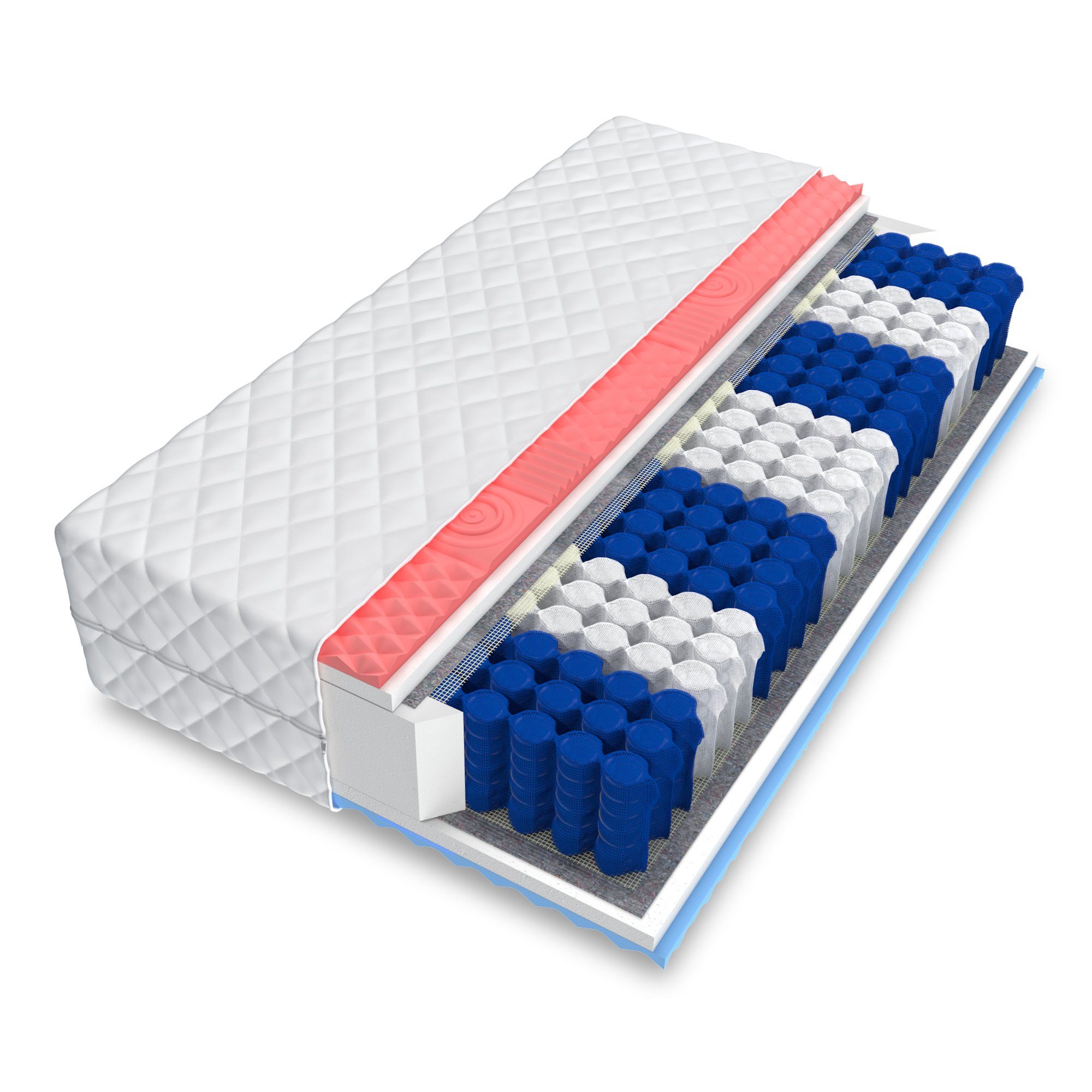 Kernaufbau | 7 Zonen-Taschenfederkern 12 cm 2 cm VISCO thermoplastischer Schaum. 2 cm HR Schaum. |