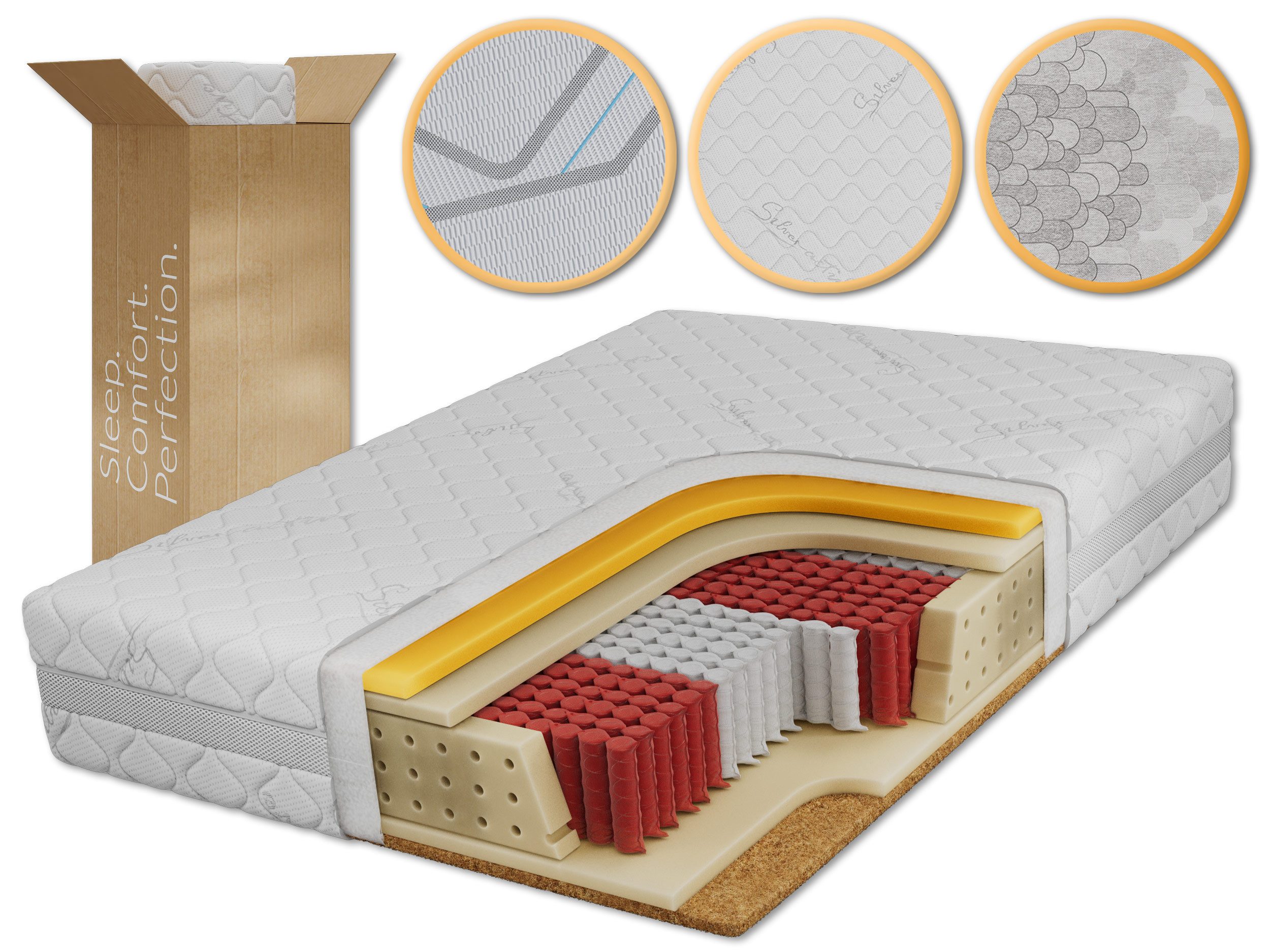 Filzschichten (je 0,2 cm) trennen die Schaumschichten vom Federkern, schützen die Materialien vor Abnutzung und erhöhen die Gesamtstabilität. Die atmungsaktive Konstruktion verbessert die Luftzirkulation und sorgt für ein angenehmes Schlafklima – auch bei wärmeren Temperaturen.