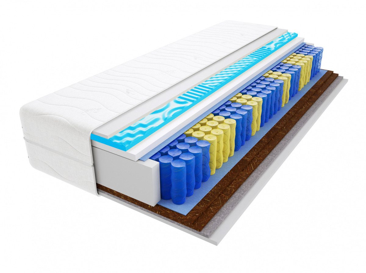 Profilierter Visco Memory Schaum-7-Zonen hochwertiger thermoelastischer Schaum, der auf Druck und Körpertemperatur reagiert.Passt sich perfekt dem Körper an,stützt es an jedem Ort, lässt die Wirbelsäule eine natürliche Position einnehmen und sorgt für eine richtige Durchblutung,erhöht die Unterstützung von schwer zugänglichen Stellen,wie den Lenden-dies wirkt sich auf die Beseitigung einiger Wirbelsäulenbeschwerden aus Rooshaar-hat einzigartige Belüftungseigenschaften.Es ist ein hygroskopisches Material,das den Schweiß des Benutzers während des Schlafs aufnimmt und gleichzeitig seine Absorption im Inneren der Matratze begrenzt,um ein angemessenes Mikroklima zu gewährleisten Kokos-100% natürlicher Rohstoff aus Kokosnuss,hat antiallergische und antimykotische Eigenschaften,verbessert die Belüftung im Inneren der Matratze, wodurch übermäßiges Schwitzen verhindert wird Hochflexibler HR-Schaum-mit einer Dichte von 35 kg/m3-dieser Schaum besteht aus einer Vielzahl von Luftblasen, sorgt für eine perfekte Körperanpassung, sehr guten Schlafkomfort und garantiert eine perfekte Belüftung der Matratze Taschenfedern, 9 Zonen (262Stk/1m2)-Jede Feder befindet sich in einer separaten Materialtasche und ist nicht mit einer anderen Feder verbunden,funktioniert separat,arbeitet leise!Dank dieser Konstruktion,Wenden und Drehen oder der Gewichtsunterschied der anderen Person ist völlig unmerklich Gesteppter Bezug - hypoallergenes,antiallergisches Material,mit einem L-förmigen Reißverschluss Wichtig:Der Bezug kann je nach Размер eine andere Anordnung von Inschriften und Zeichen aufweisen. Das Bezugsmuster kann geringfügig von dem auf dem Foto gezeigten abweichen. Die in der Visualisierung verwendeten Farben Farben sind illustrativ und können von den tatsächlichen Farben abweichen, die Eigenschaften der einzelnen Ebenen bleiben jedoch erhalten