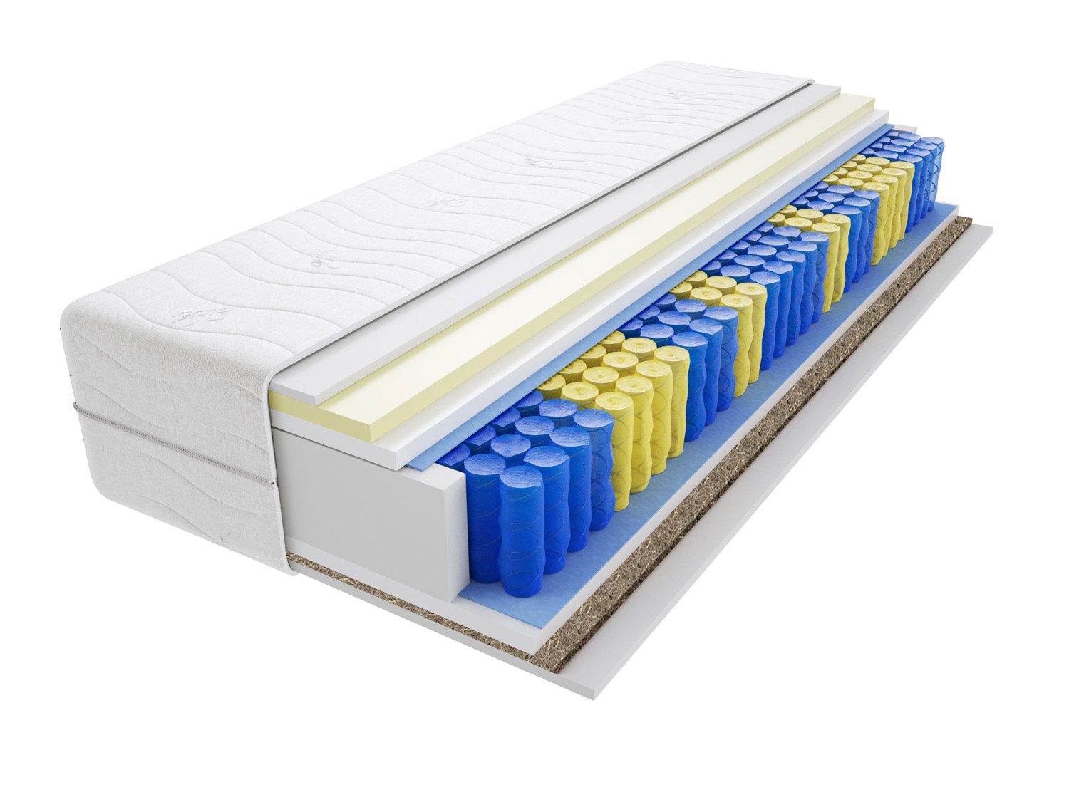 Visco Memory Schaum-hochwertiger Polyurethanschaum,der auf Druck und Temperatur reagiert.Es passt sich perfekt der Körperform an,stützt es an jedem Ort perfekt,lässt die Wirbelsäule eine natürliche Position einnehmen und sorgt für eine gute Durchblutung,erhöht die Unterstützung von schwer zugänglichen Stellen,wie den Lenden -dies wirkt sich auf die Beseitigung einiger Wirbelsäulenbeschwerden aus. Seegras-100% natürlicher Rohstoff gewöhnt zum Härten der Matratze.Die Seegrasseite ist die harte Seite,hat Belüftungseigenschaften, verhindert übermäßiges Schwitzen,ist antiallergisch und antimykotisch.Es hat einen charakteristischen Geruch von trockenem Gras.Wird für Matratzen mit Aromatherapie verwendet-es wirkt sich positiv auf Entspannung und Schlaf aus Hochflexibler HR-Schaum-mit einer Dichte von 35 kg/m3-dieser Schaum besteht aus einer Vielzahl von Luftblasen, sorgt für eine perfekte Körperanpassung, sehr guten Schlafkomfort und garantiert eine perfekte Belüftung der Matratze.Die erhöhte Dichte des HR-Schaums verlängert die Haltbarkeit der Matratze im Vergleich zum oft verwendeten T25-Polyurethanschaum erheblich Taschenfedern,9 Zonen (262Stk/1m2)-Jede Feder befindet sich in einer separaten Materialtasche und ist nicht mit einer anderen Feder verbunden, funktioniert separat, arbeitet leise!Dank dieser Konstruktion,Wenden und Drehen oder der Gewichtsunterschied der anderen Person ist völlig unmerklich Gesteppter Bezug-hypoallergenes, antiallergisches Material, mit einem L-förmigen Reißverschluss Wichtig:Der Bezug kann je nach Размер eine andere Anordnung von Inschriften und Zeichen aufweisen. Das Bezugsmuster kann geringfügig von dem auf dem Foto gezeigten abweichen. Die in der Visualisierung verwendeten Farben Farben sind illustrativ und können von den tatsächlichen Farben abweichen, die Eigenschaften der einzelnen Ebenen bleiben jedoch erhalten