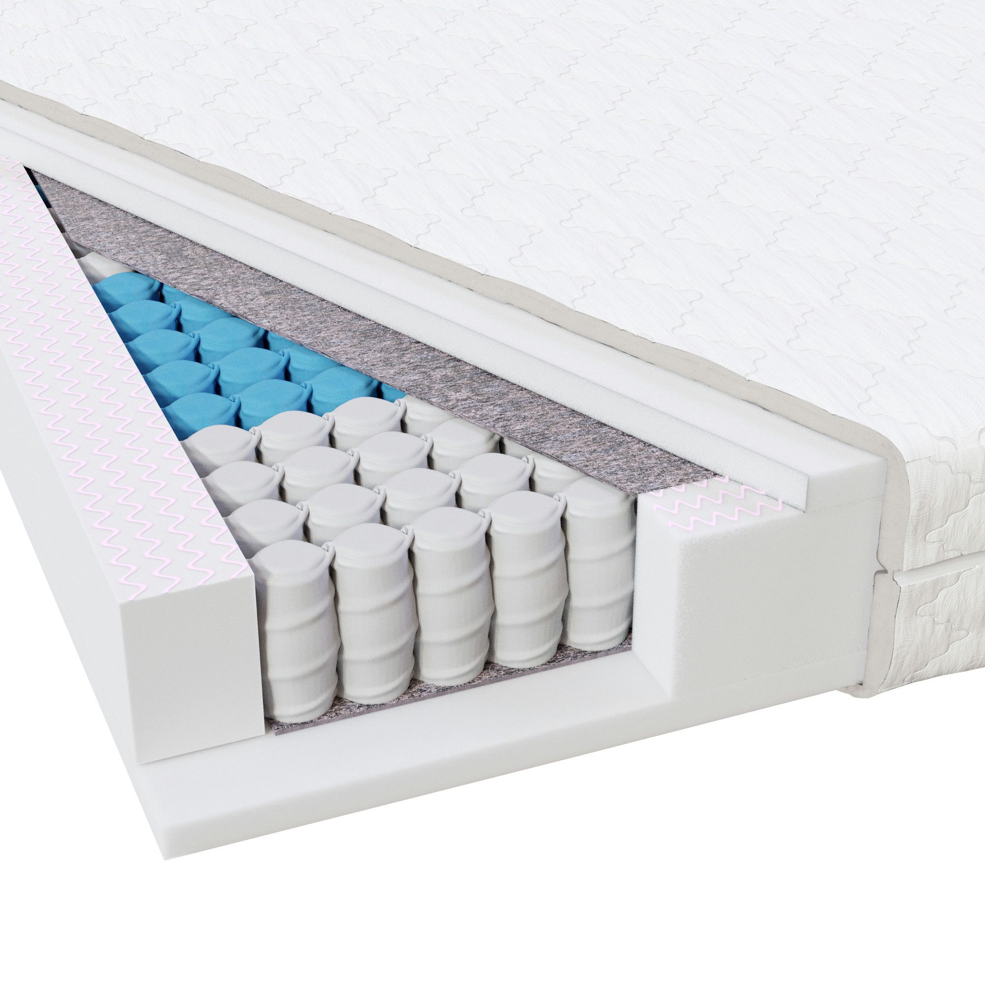 Eigenschaften Matratze | Kernhöhe: 19 cm, Tonnentaschenfederkern, Gesamthöhe: ca. 21 cm, 7-Liegezonen |