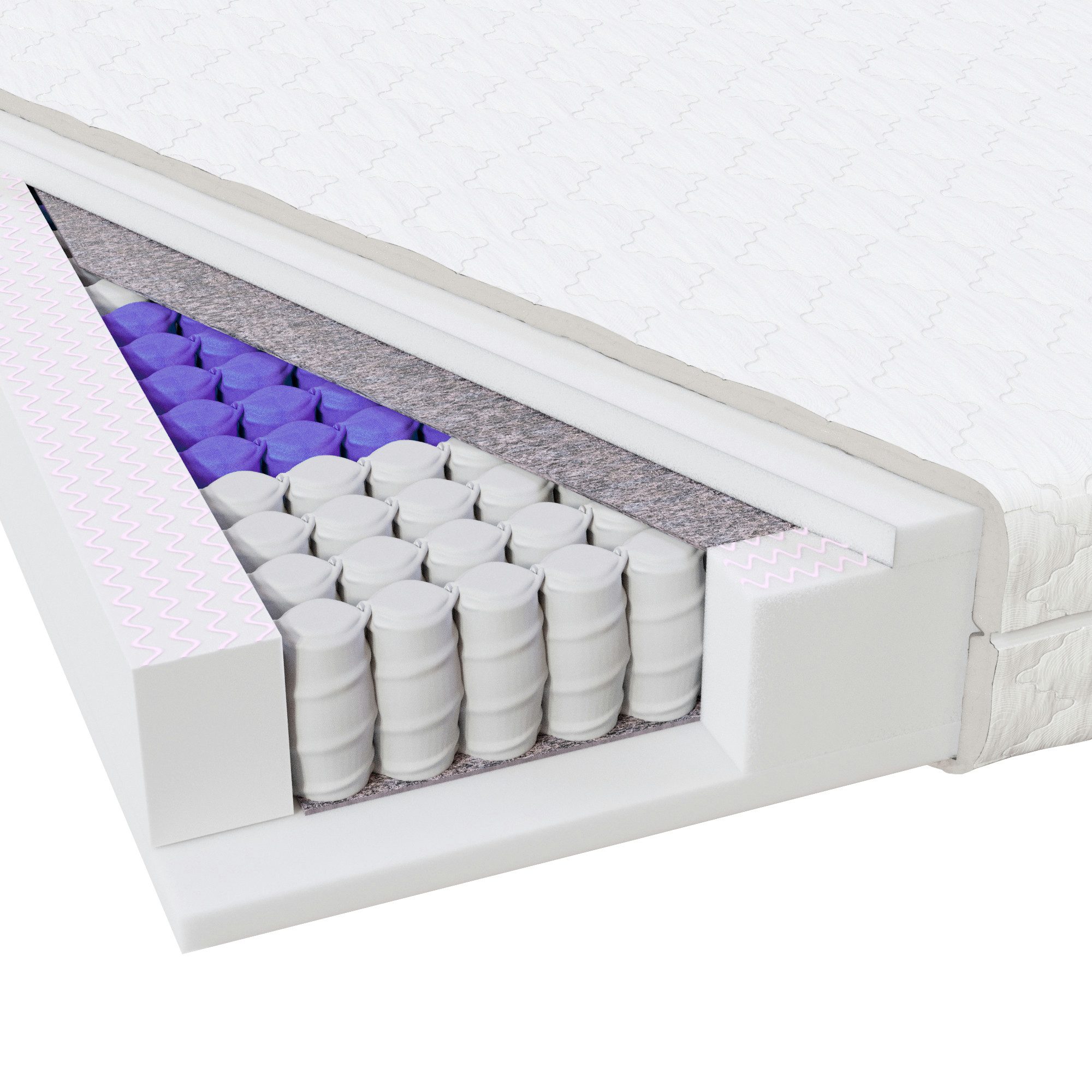 Eigenschaften Matratze | Kernhöhe: 19 cm, Tonnentaschenfederkern, Gesamthöhe: ca. 21 cm, 7-Liegezonen |