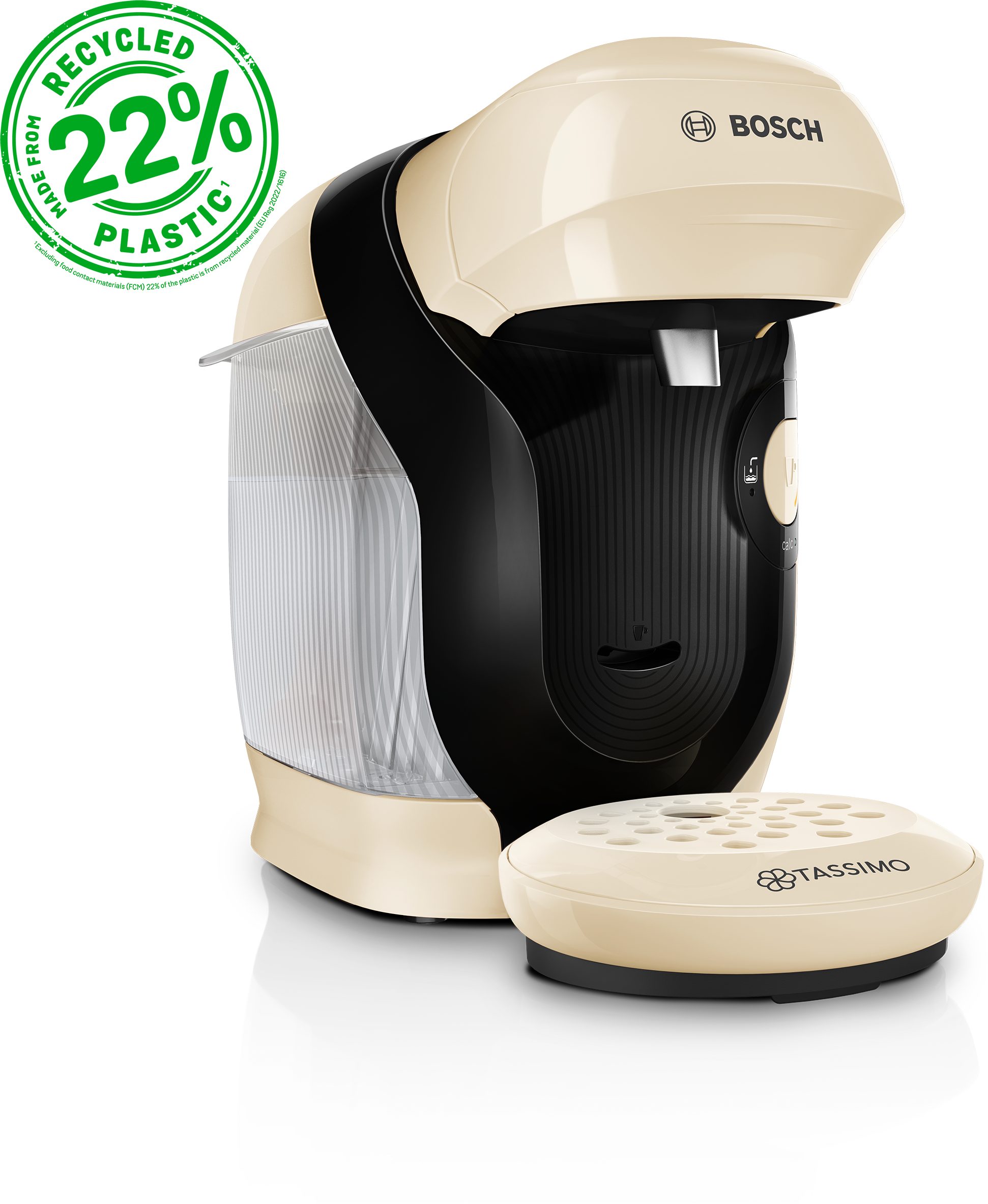Впередe Vorteile | Abnehmbarer Wassertank 0,7l, von vorne einsehbar Automatischer Dampfstoß zur Reinigung nach jeder Getränkezubereitung Automatisches Reinigungs- und Entkalkungsprogramm, spülmaschinengeeignete Einzelteile Geeignet für fast alle Tassen: Höhenverstellbares und herausnehmbares Tassenpodest Genau richtig dosierte Kapsel: Jede T Disc enthält frische-versiegelte Zutaten von hoher Qualität Geringer Energieverbrauch: komfortable Selbstabschaltung nach dem Brühvorgang Große Getränkevielfalt: Über 70* Spezialitäten wie Espresso, Caffè Crema, Filterkaffee, Latte Macchiato, Cappuccino, heiße Kakao-Spezialitäten und Tee (* = Verfügbares Angebot auf www.tassimo.de). Getränkekompetenz namhafter Marken: z.B. L'Or, Costa, Jacobs, Kenco, Gevalia, Cadbury, Milka und Twinings. Innovatives Heizsystem: Die benötigte Wassermenge wird nur bei Bedarf aufgeheizt. Intuitives LED-Bedienfeld: LEDs informieren über den jeweiligen Gerätezustand und zeigen an, wenn Nachfüllen von Wasser oder Entkalken notwendig ist. Keine Aufheizdauer. Sofortige Zubereitung des ersten Getränks Manuelle Getränkestärke-Anpassung: Für ein milderes oder stärkeres Getränk One-Touch Bedienung: dein Lieblingsgetränk einfach auf Knopfdruck. Platzsparend: kompakte Gerätemaße Single serve: perfekt für eine Tasse des Getränks deiner Wahl. |