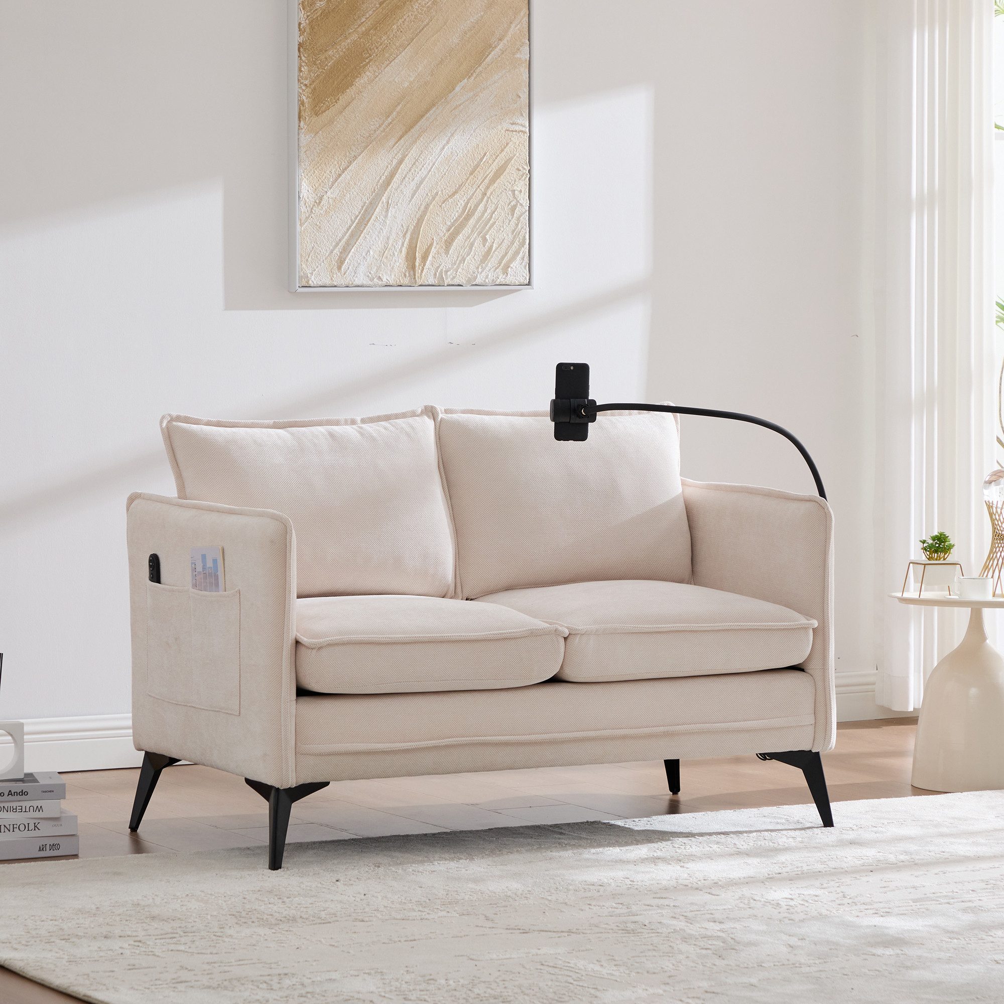 Das moderne Doppelsofa ist perfekt für kleine Räume wie Wohnzimmer, Schlafzimmer und Balkon. Es verbindet einen europäisch-amerikanischen Stil mit weicher Chenille-Optik. Das Polster ist angepasst an den Körper, bietet Komfort und ist mit praktischen Seitenfächern und einer Handyhalterung ausgestattet. Stabile Metallfüße sorgen für Halt und Stabilität.