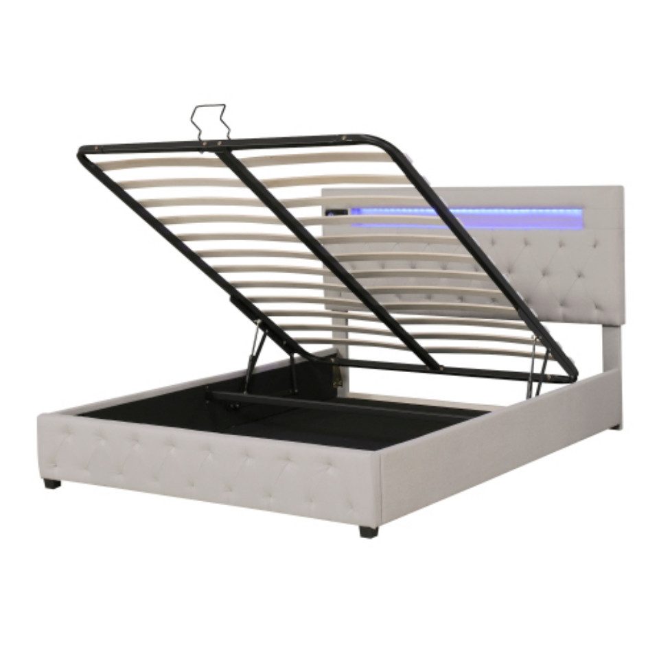 Ein modernes Bett für ein luxuriöses Erlebnis. Mit LED-Lichtleiste, Bluetooth-Player und 2 USB-Ladeanschlüssen ausgestattet, bietet dieses multifunktionale Bett Komfort und Unterhaltung. Der hydraulische Stauraum maximiert die Aufbewahrungsmöglichkeiten.