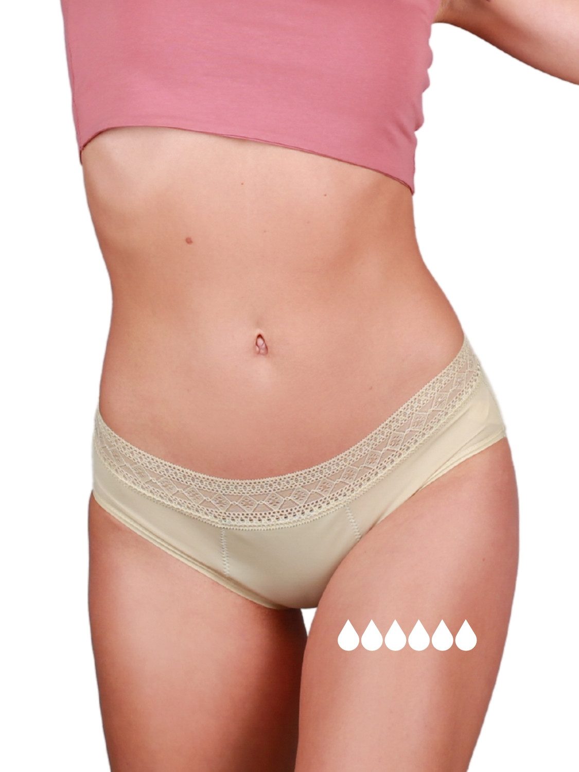 Materialeigenschaften | Material: Innen: 95 % Bio-Baumwolle und 5 % Elasthan Saugkern: 80 % Polyester und 20 % Polyamid Schutzschicht: 100 % TPU ohne Weichmacher Außen: 82 % Polyamid und 18 % Elasthan |