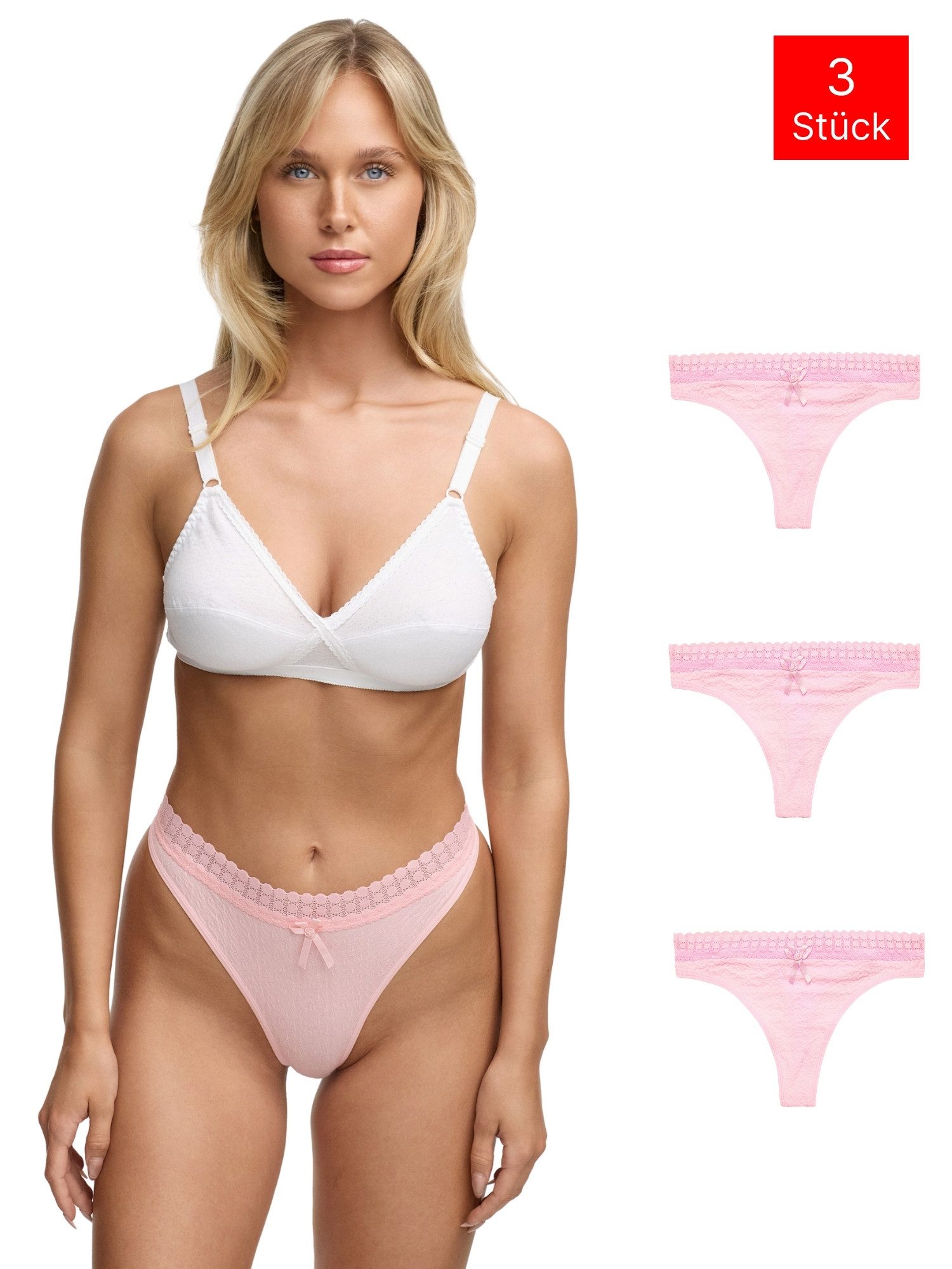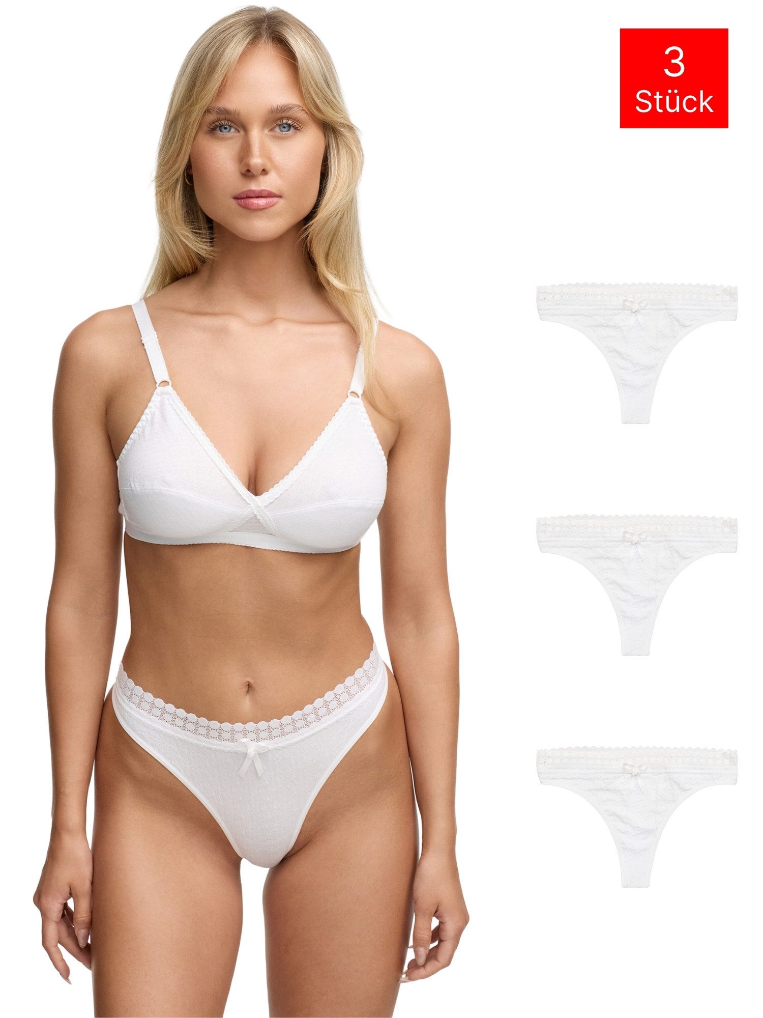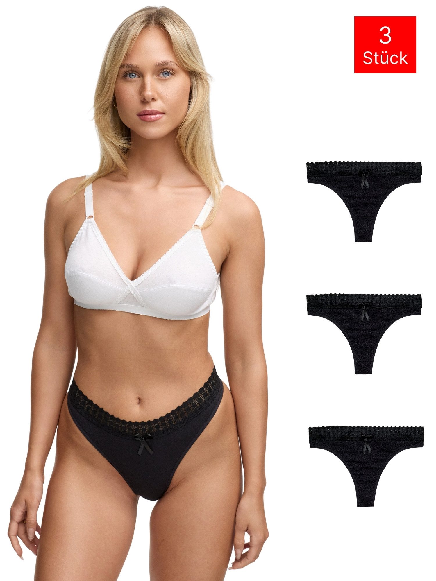 Tazzio Damen String im 3er-Pack - dein unsichtbarer Begleiter mit Stil. Das Spitzen-Detail am Bund macht was her, ohne aufzutragen. Sitzt perfekt auf der Hüfte, verschwindet unter jedem Outfit. Der leichte Mix fühlt sich an wie eine zweite Haut - keine Abdrücke, kein Drama. Dreimal zugreifen und du bist für alle Situationen gerüstet. Mehr brauchst du nicht.