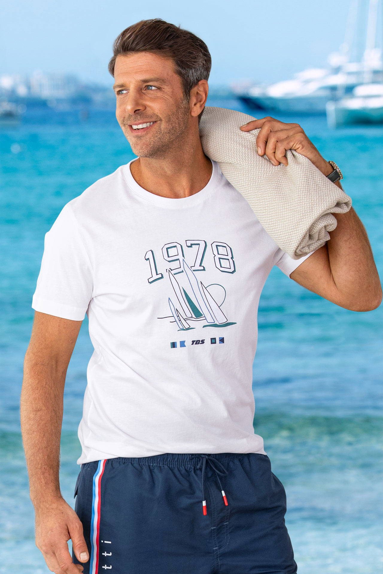 Das TBS Druckshirt vereint stilvolles Design mit maritimem Flair. Mit einem platzierten Frontdruck und einem teils aufwendig gestickten Motiv ist dieses Shirt nicht nur ein Blickfang, sondern auch ein Ausdruck von Individualität und Stilbewusstsein.